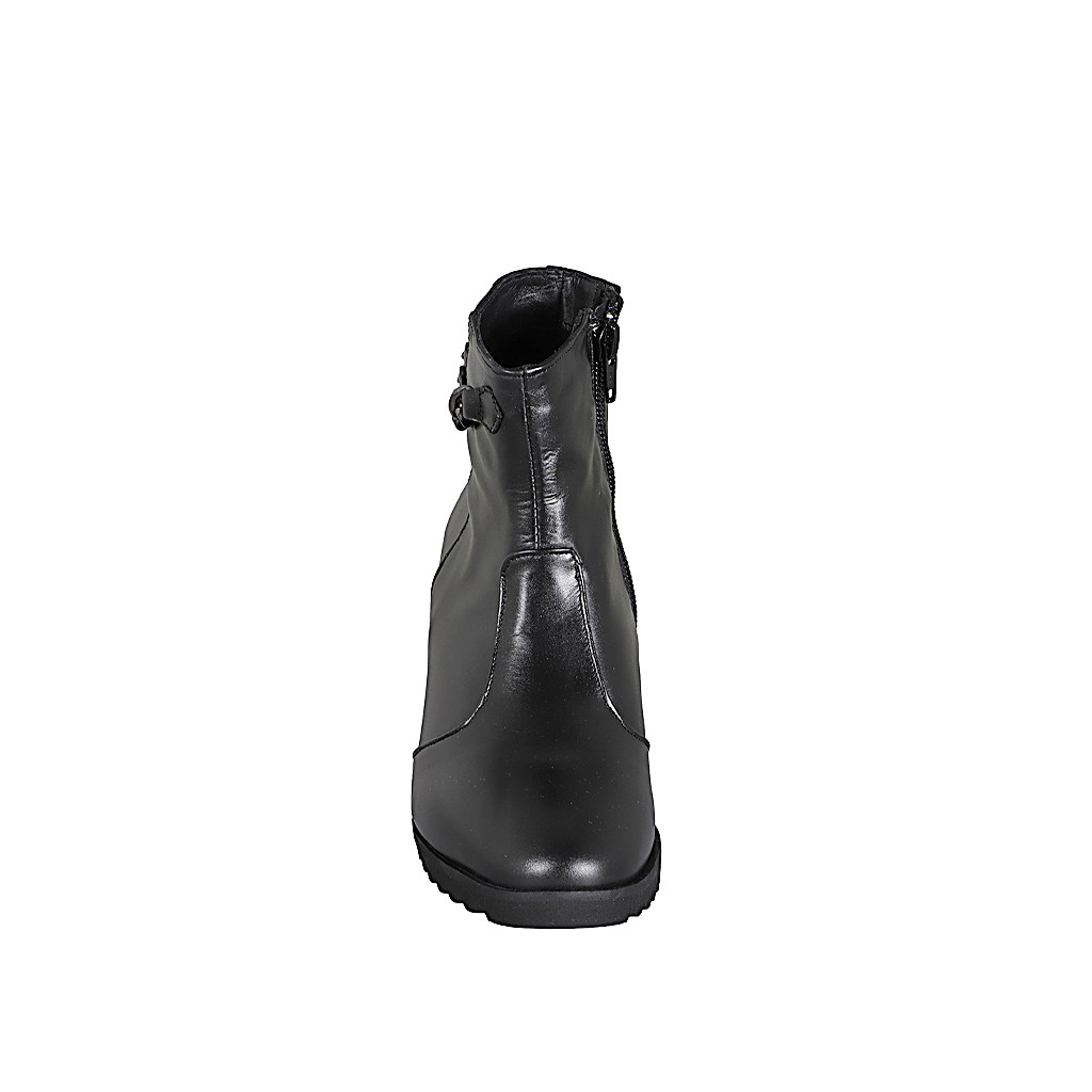Botín de mujer con plantilla extraíble, cremallera y cadena en piel negra cuña 6 - Tallas disponibles:  35