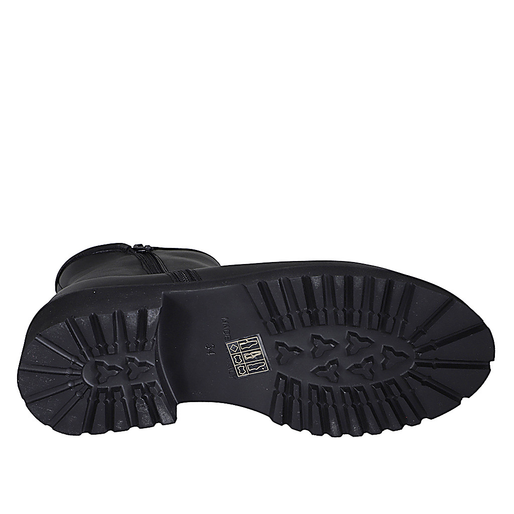 Botines para mujer en piel negra con cremalleras y forro en pelaje tacon 4 - Tallas disponibles:  43, 44, 45, 46