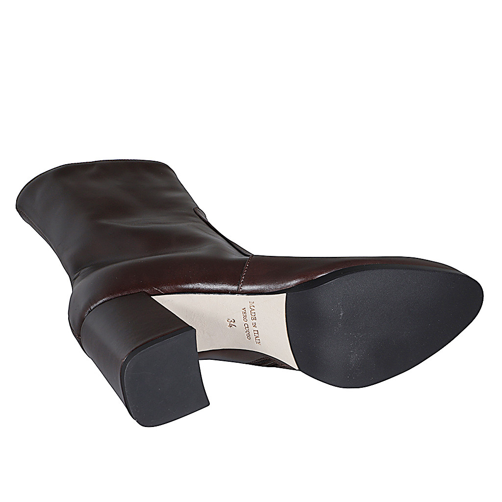 Botines altos para mujer con cremallera en piel marron oscuro tacon 7