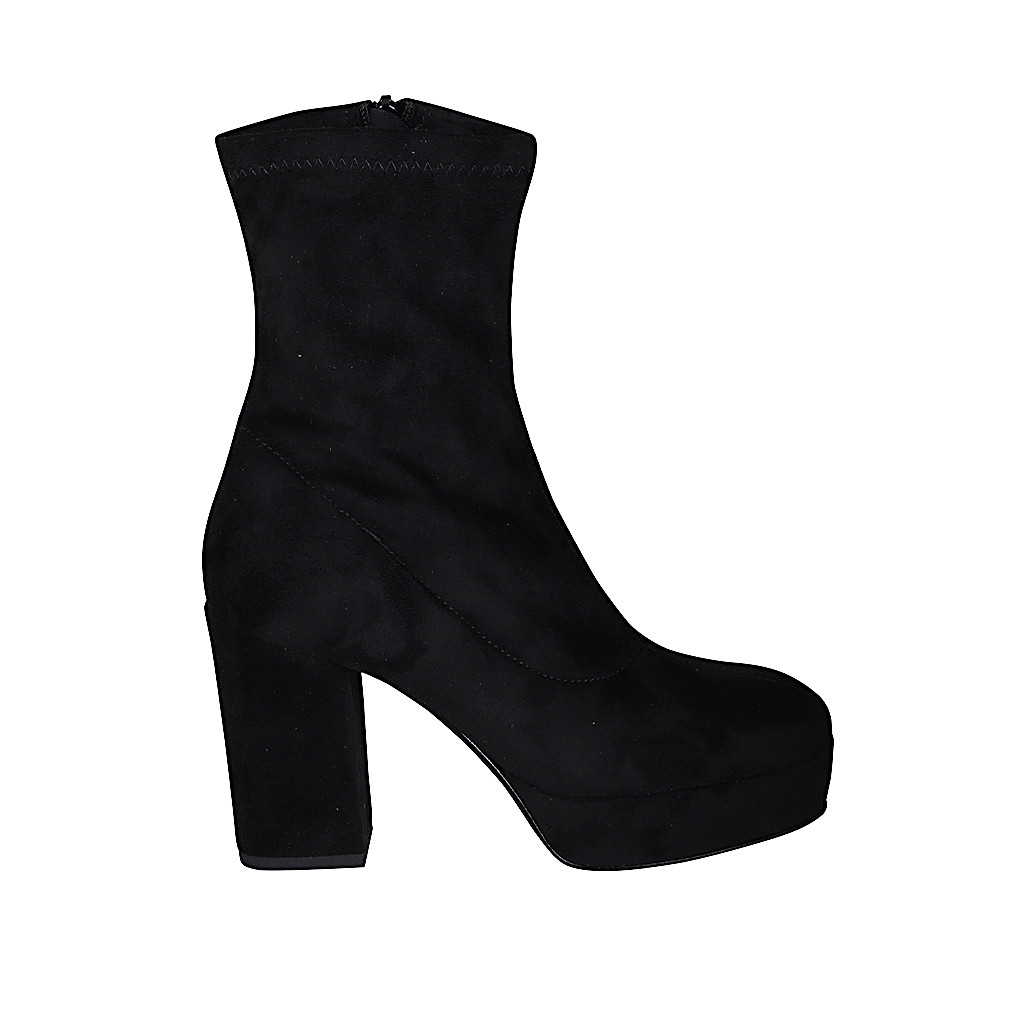 Botines para mujer con cremallera y plataforma en gamuza y material elástico negro tacon 9 - Tallas disponibles:  33, 35