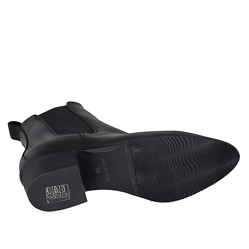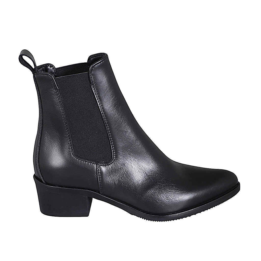 Botines a punta para mujer con elasticos en piel negra con tacon 4