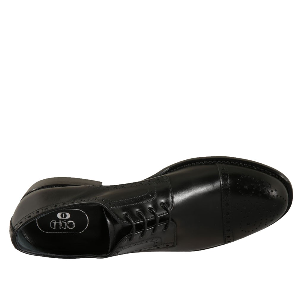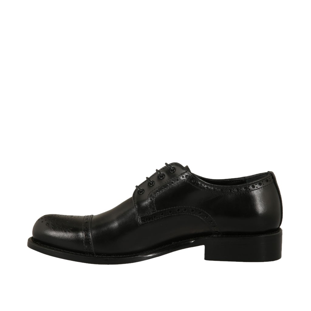 Zapato derby para hombre con cordones y puntera floral en piel de color negro - Tallas disponibles:  38