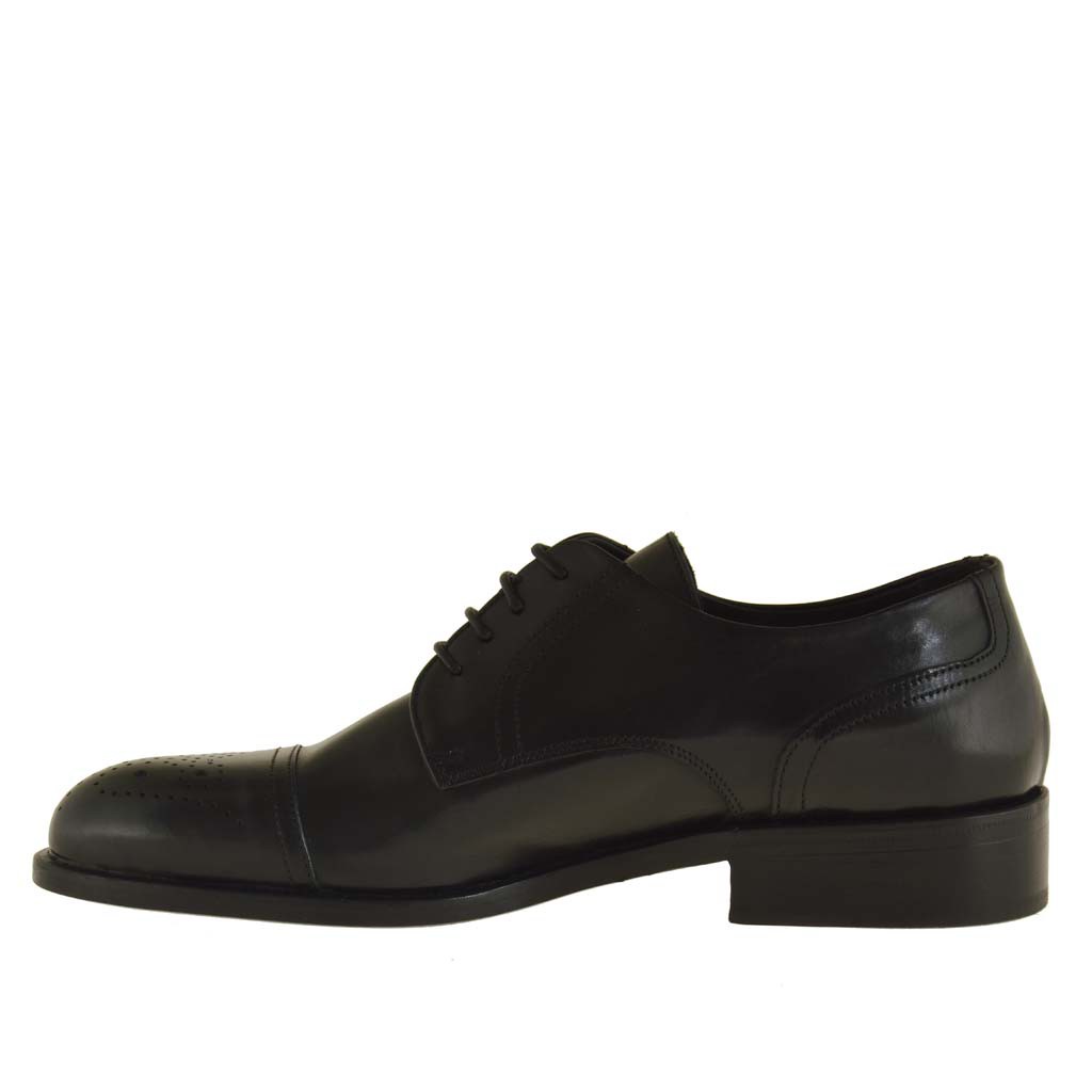 Zapato derby para hombre con cordones y puntera en piel de color negro - Tallas disponibles:  36