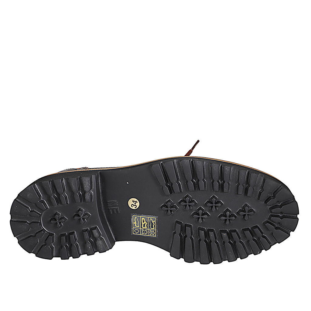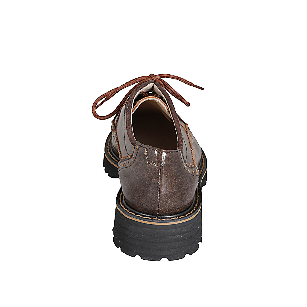 Zapato derby con cordones y punta de ala para mujer en piel vintage y gamuza marron tacon 3