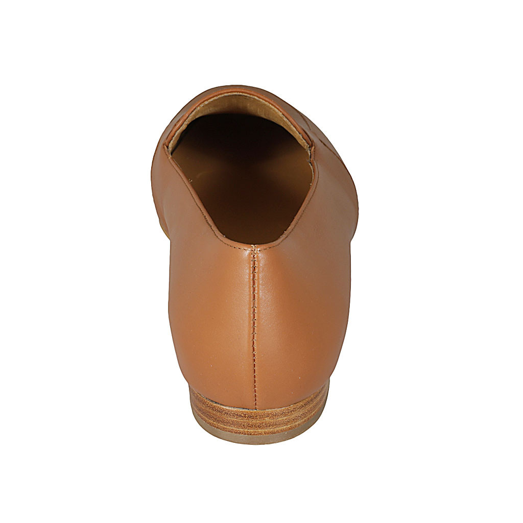 Mocasino para mujer en piel cognac tacon 1