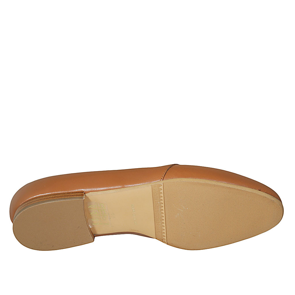 Mocasino para mujer en piel cognac tacon 1 - Tallas disponibles:  42, 43, 44, 45
