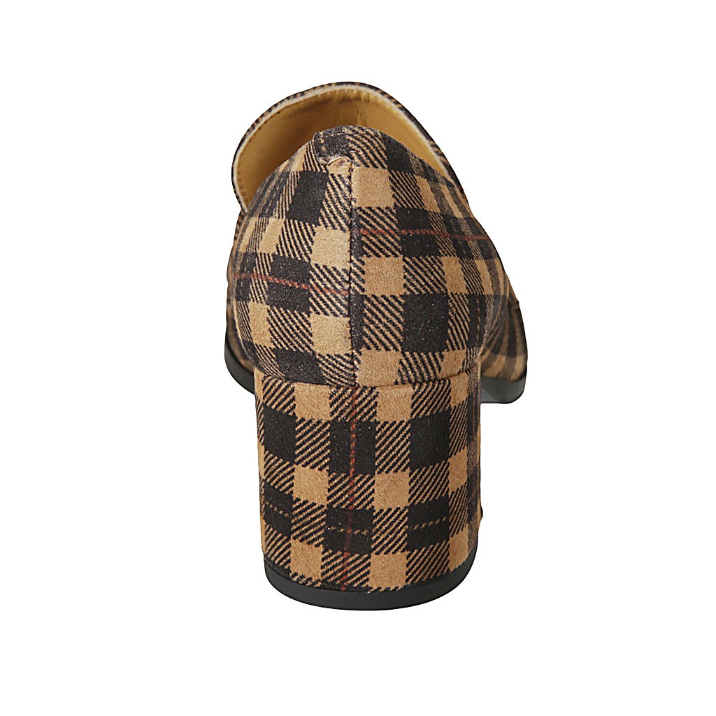 Mocasino a punta para mujer en gamuza escocésa marron y beis tacon 6 - Tallas disponibles:  42, 43