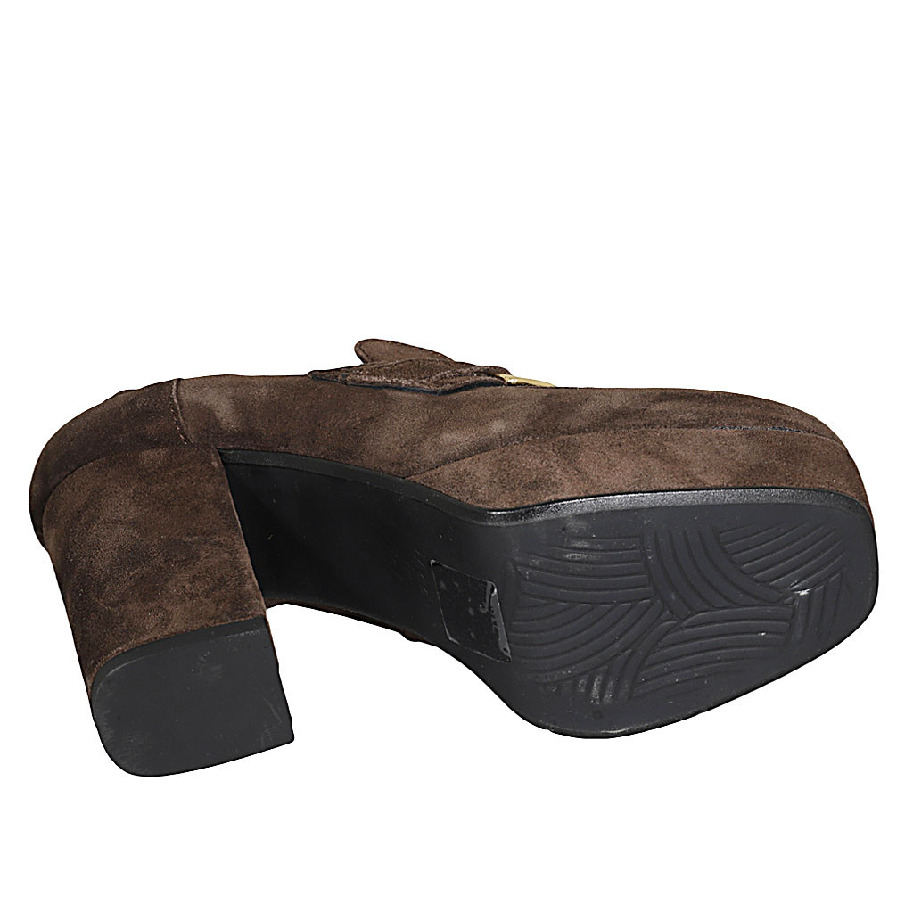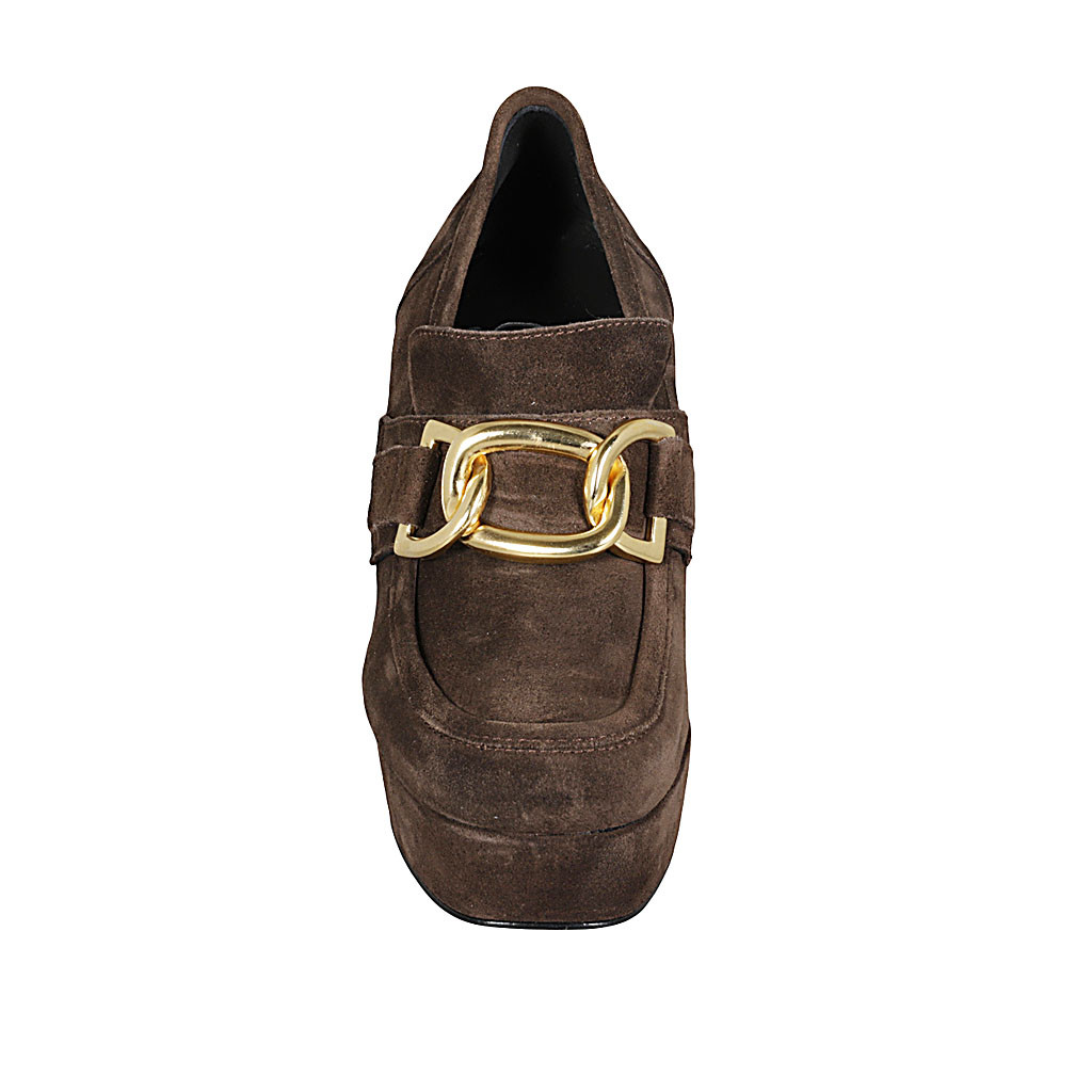 Mocasino para mujer con plataforma y cadena en gamuza marron tacon 9 - Tallas disponibles:  42