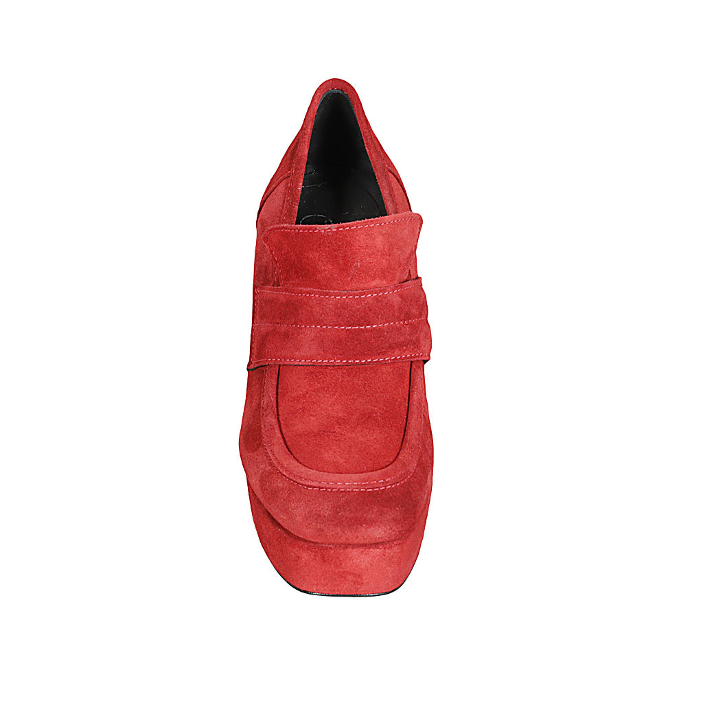 Mocasino para mujer con plataforma en gamuza roja oscura tacon 9 - Tallas disponibles:  32, 42