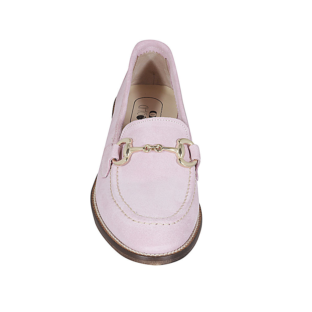 Mocasín para mujer con accesorio en gamuza rosa tacon 3 - Tallas disponibles:  32