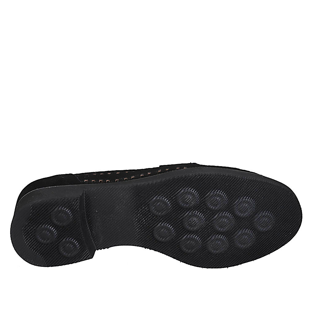 Zapato abierto puntiagudo para mujer con cinturon cruzado en gamuza bordada roja y negra tacon 10