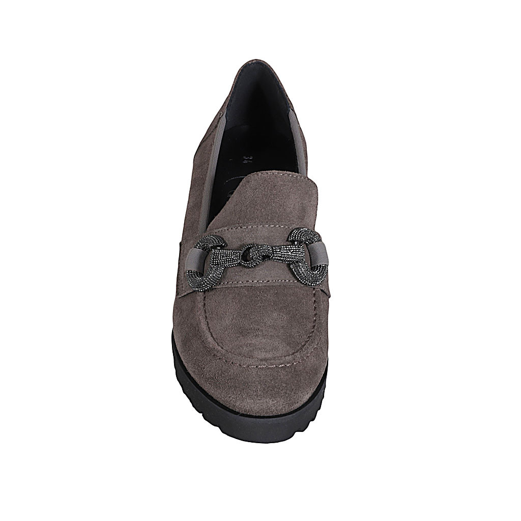 Mocasín para mujer con accesorio en gamuza gris pardo tacon 6 - Tallas disponibles:  44