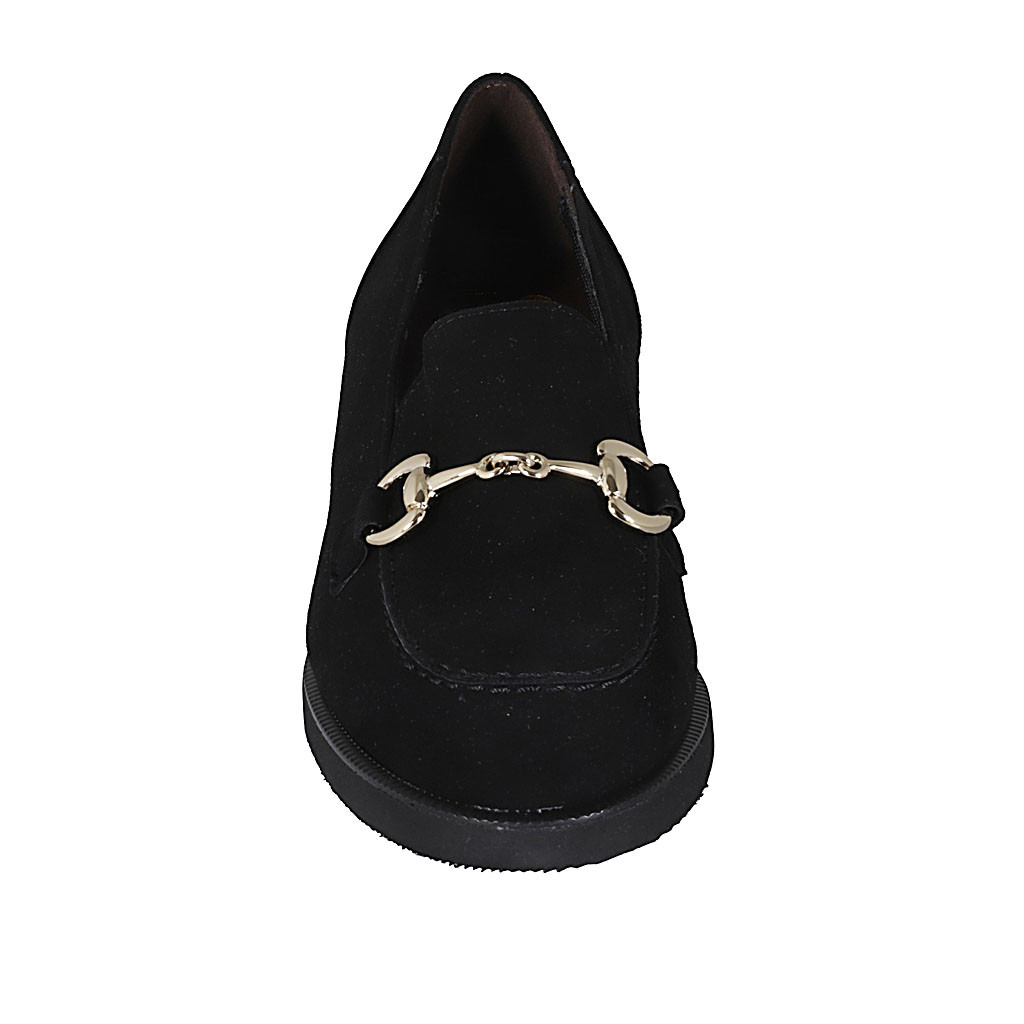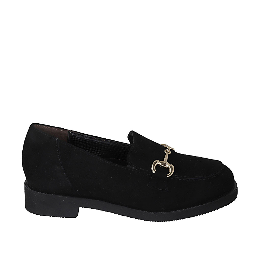 Mocasín para mujer con accesorio y plantilla extraible en gamuza negra tacon 3 - Tallas disponibles:  31
