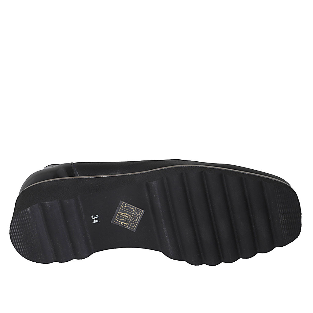 Mocasín para mujer con accesorio, elasticos y plantilla extraible en piel y charol negro cuña 4 - Tallas disponibles:  45