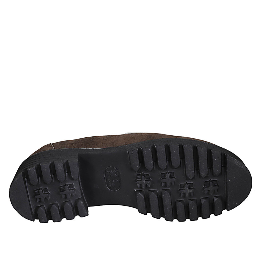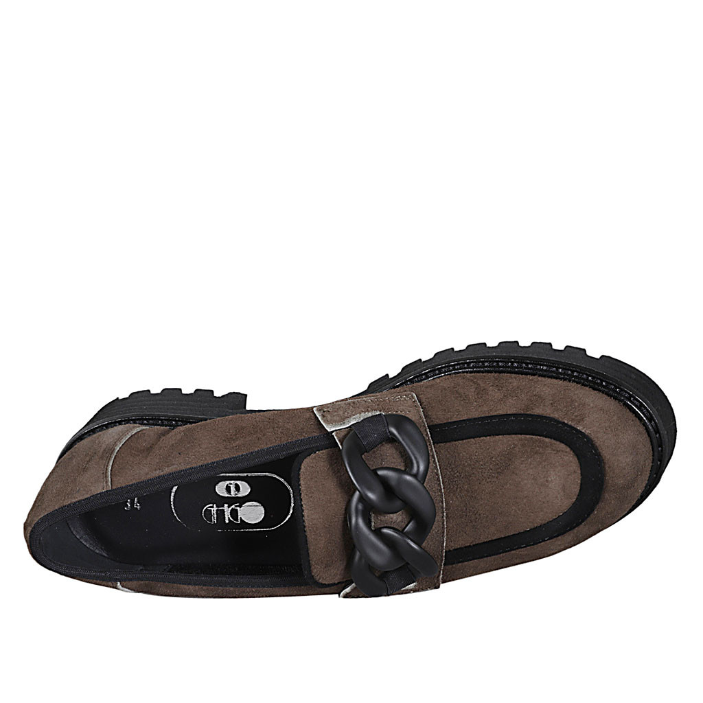 Mocasino para mujer con cadena en gamuza marron y negra tacon 4 - Tallas disponibles:  44, 45