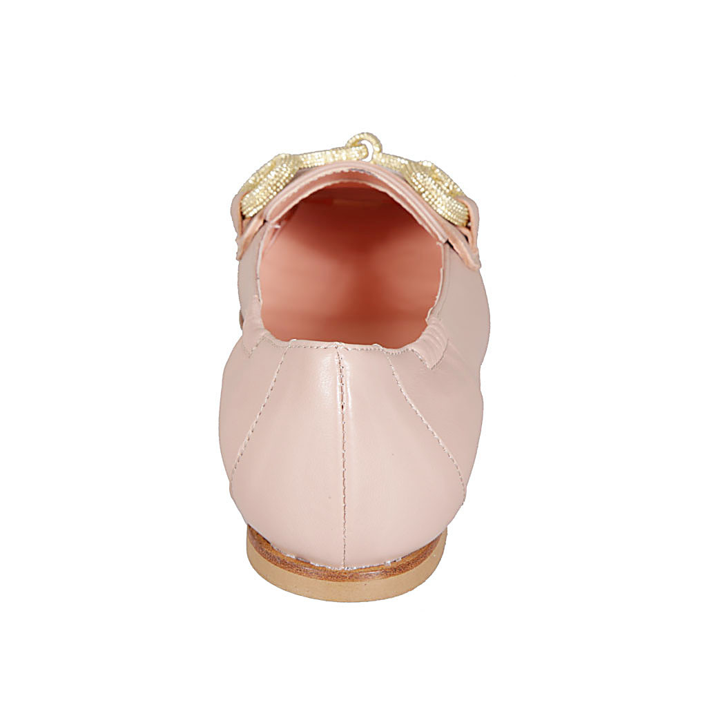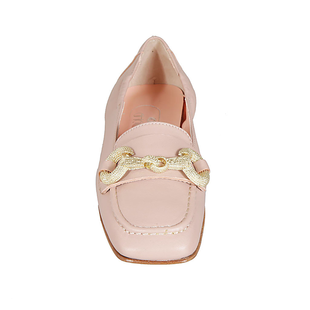 Mocasin con punta cuadrada y accesorio para mujer en piel rosado claro tacon 1 - Tallas disponibles:  32