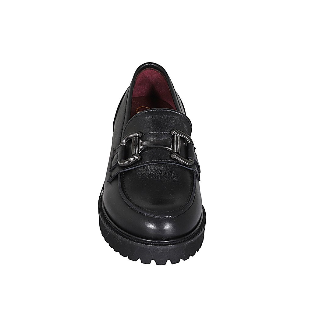 Sandalia con cinturon para mujer en piel negra y laminada plateada tacon 8