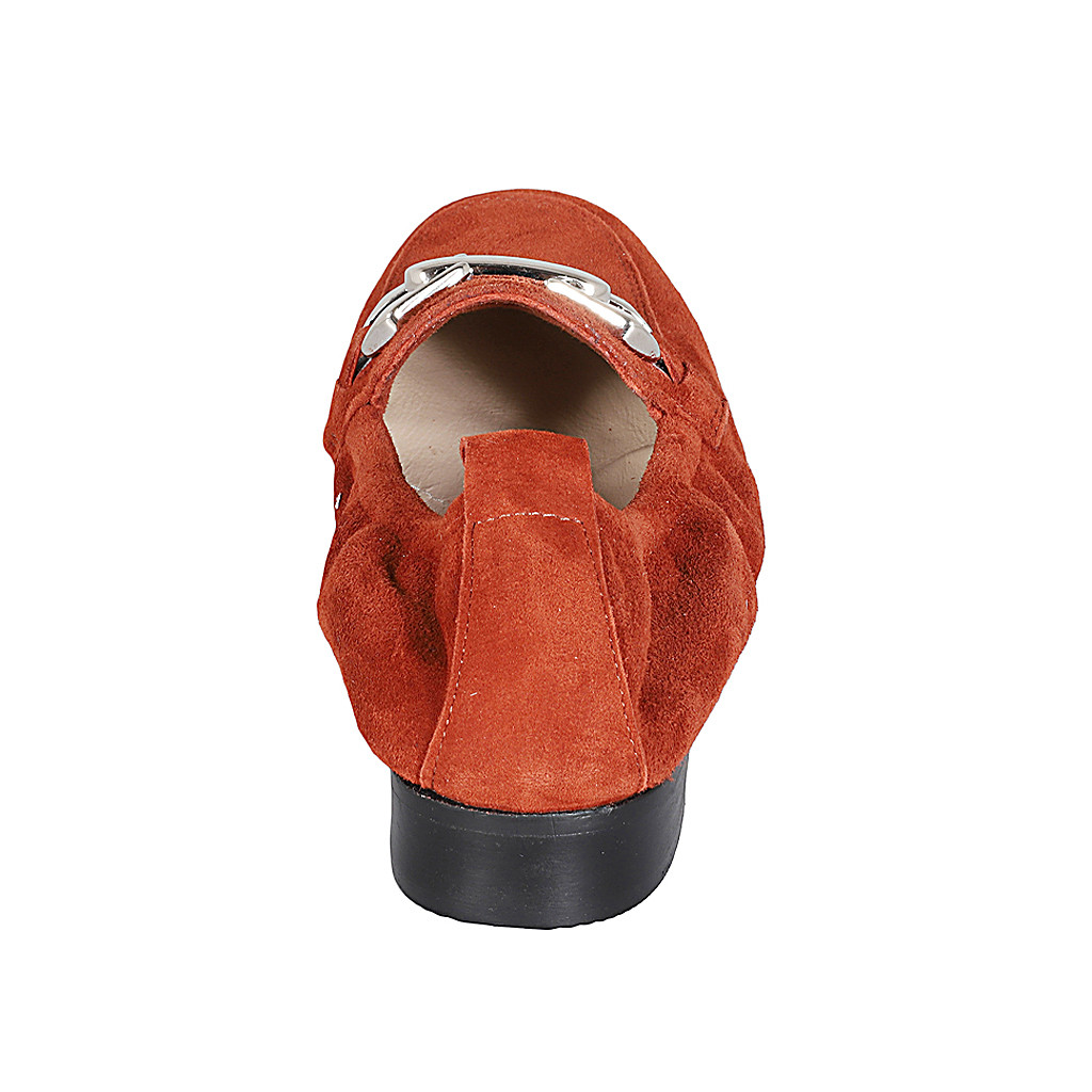 Mocasino para mujer en gamuza roja ladrillo con accesorio y elastico tacon 2 - Tallas disponibles:  43, 44, 45