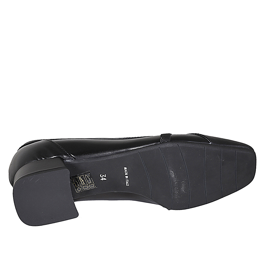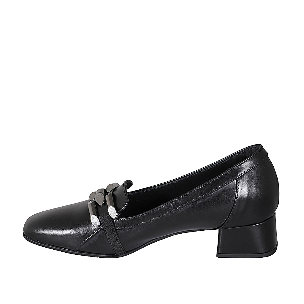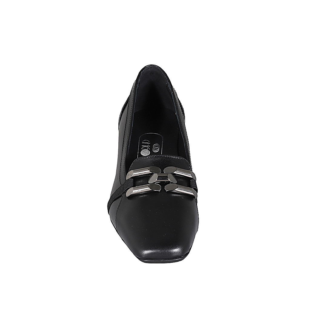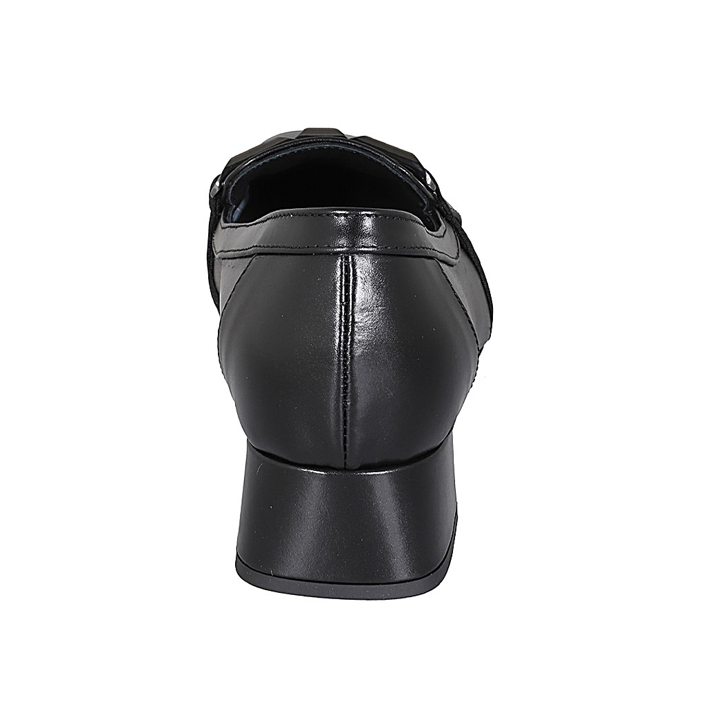 Sandalia con cinturon para mujer en piel negra y laminada plateada tacon 8