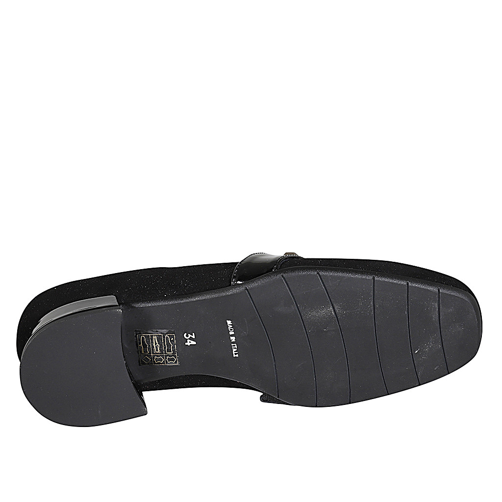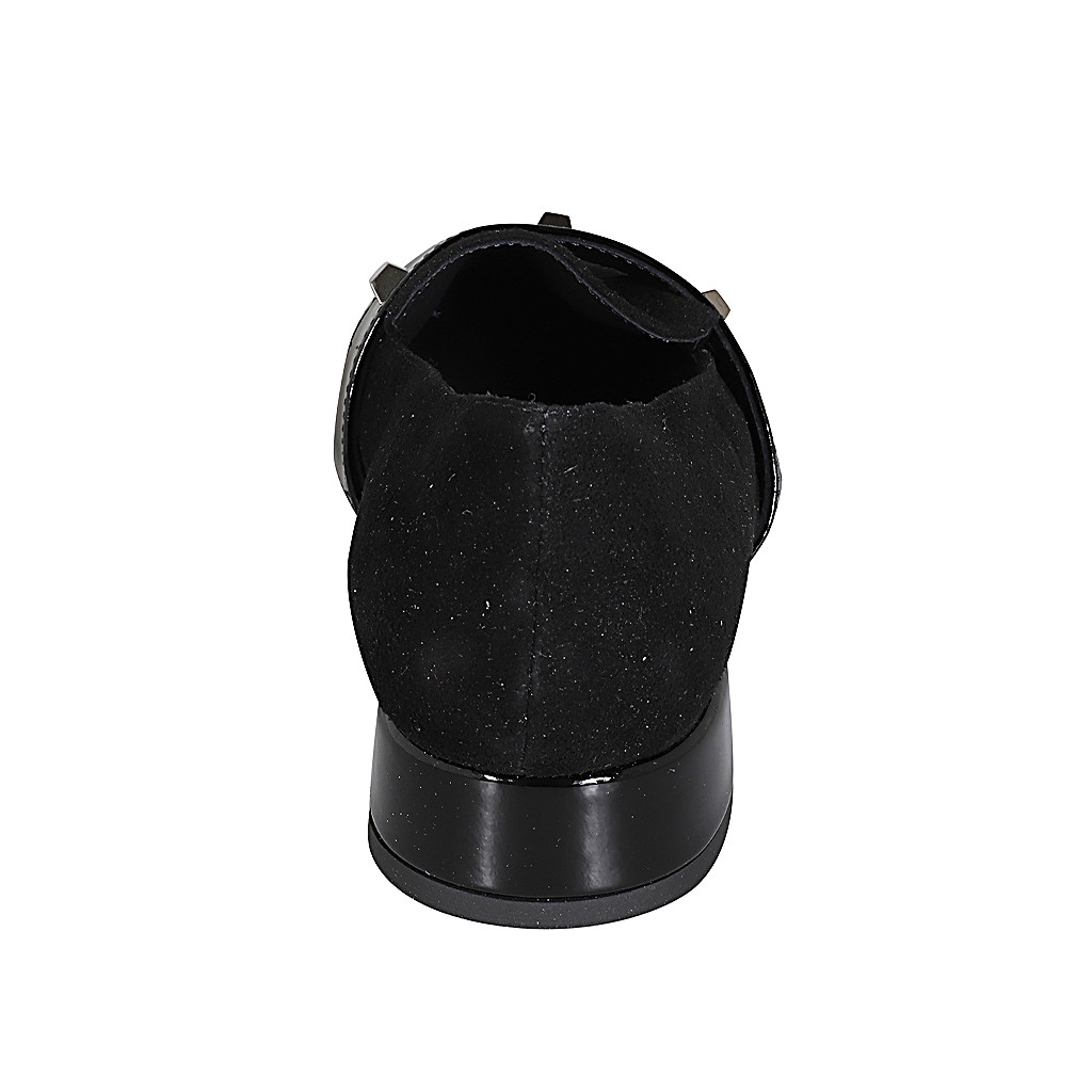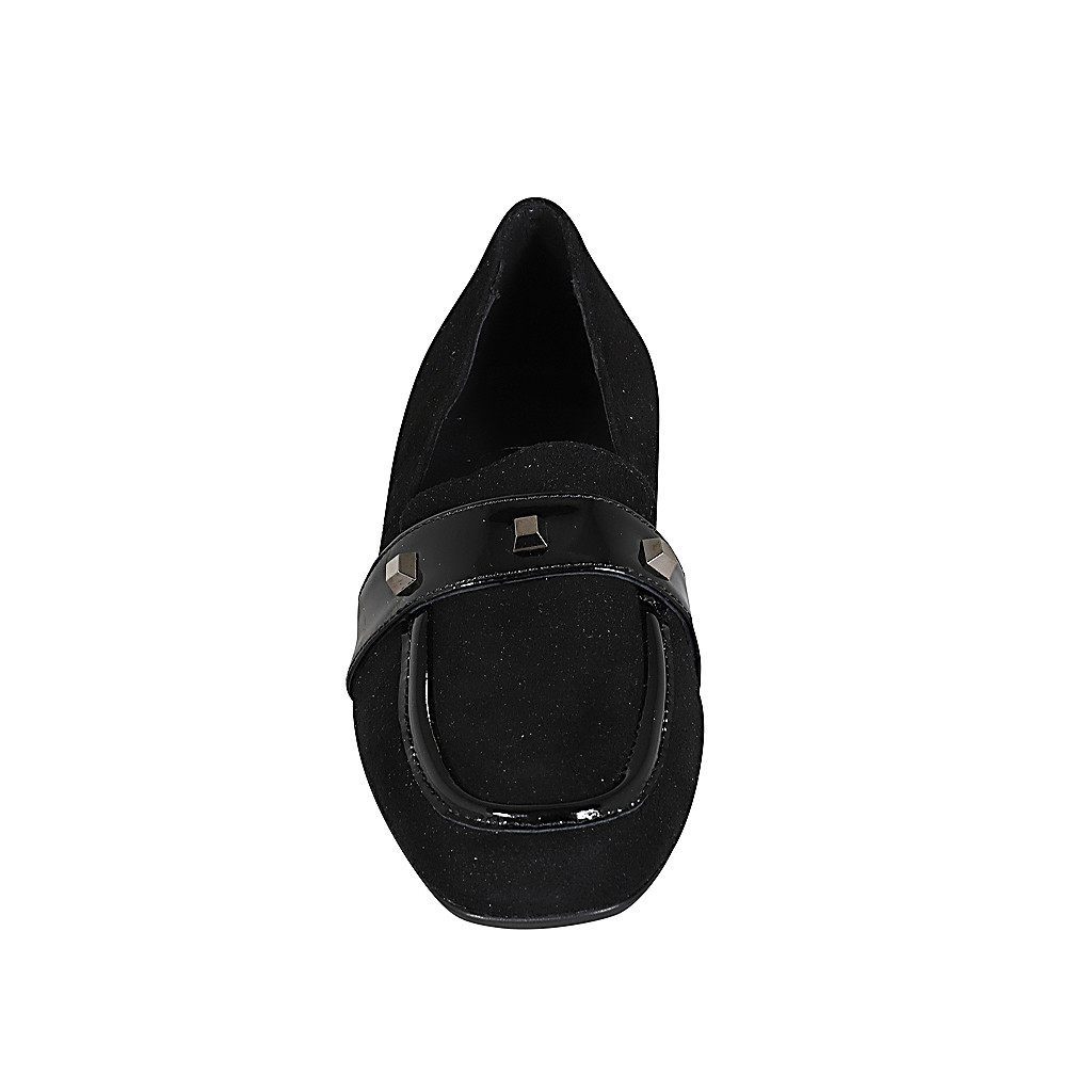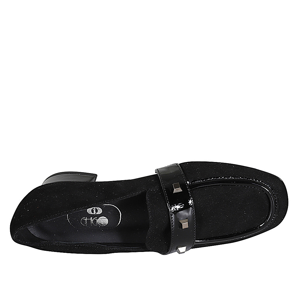 Mocasin con punta cuadrada y tachuelas para mujer en gamuza y charol negro tacon 3 - Tallas disponibles:  33, 34, 35, 43, 44, 45