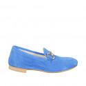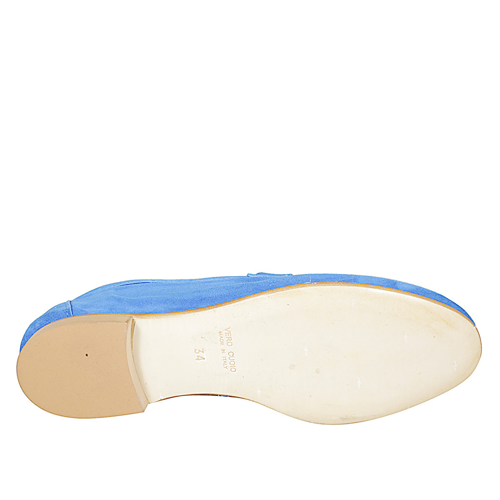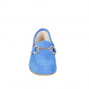 Mocasines para mujer con detalle dorado en gamuza color azul y con tacón 1