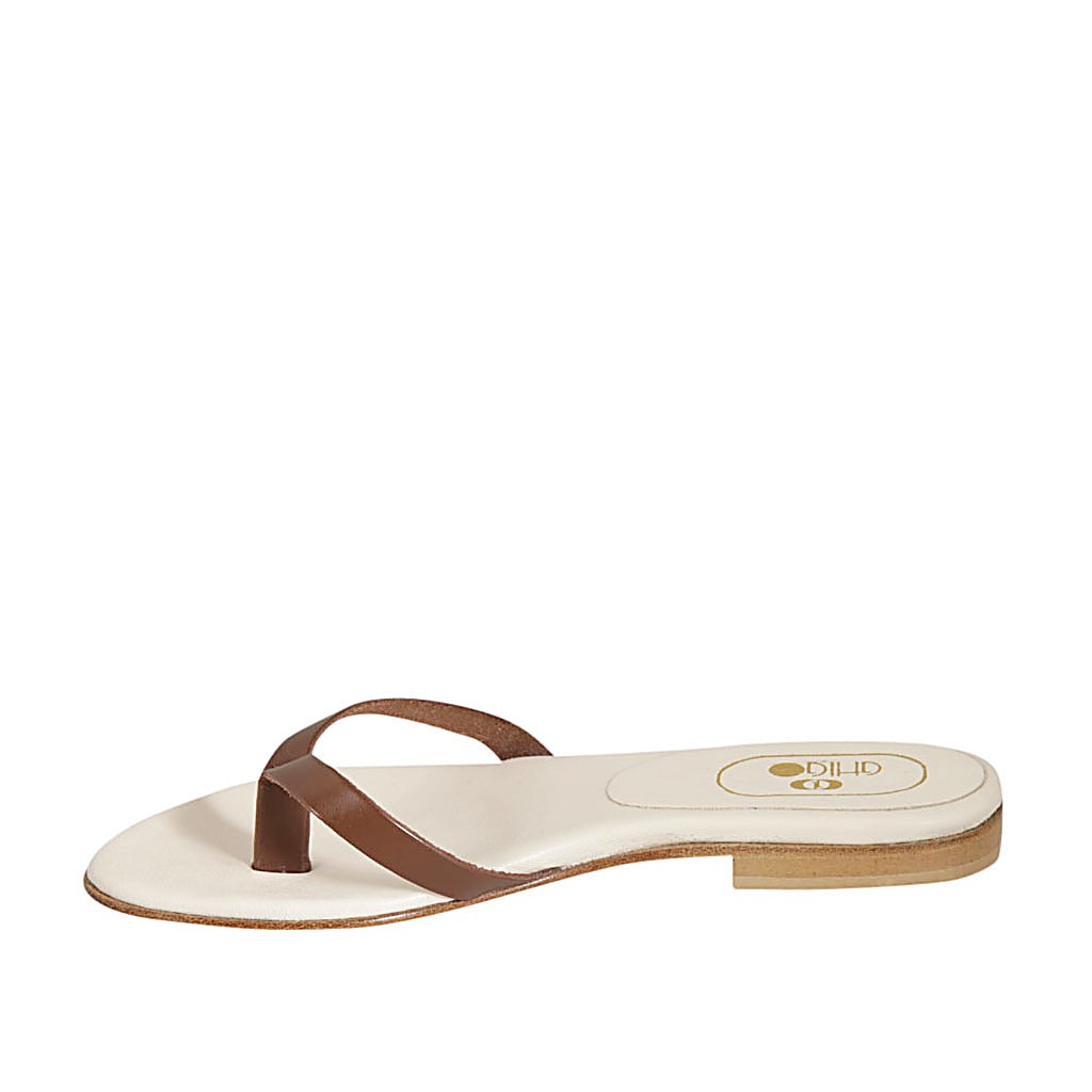 Chanclas de dedo para mujer en piel cognac tacon 1 - Tallas disponibles:  42