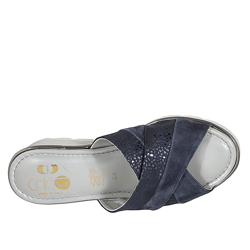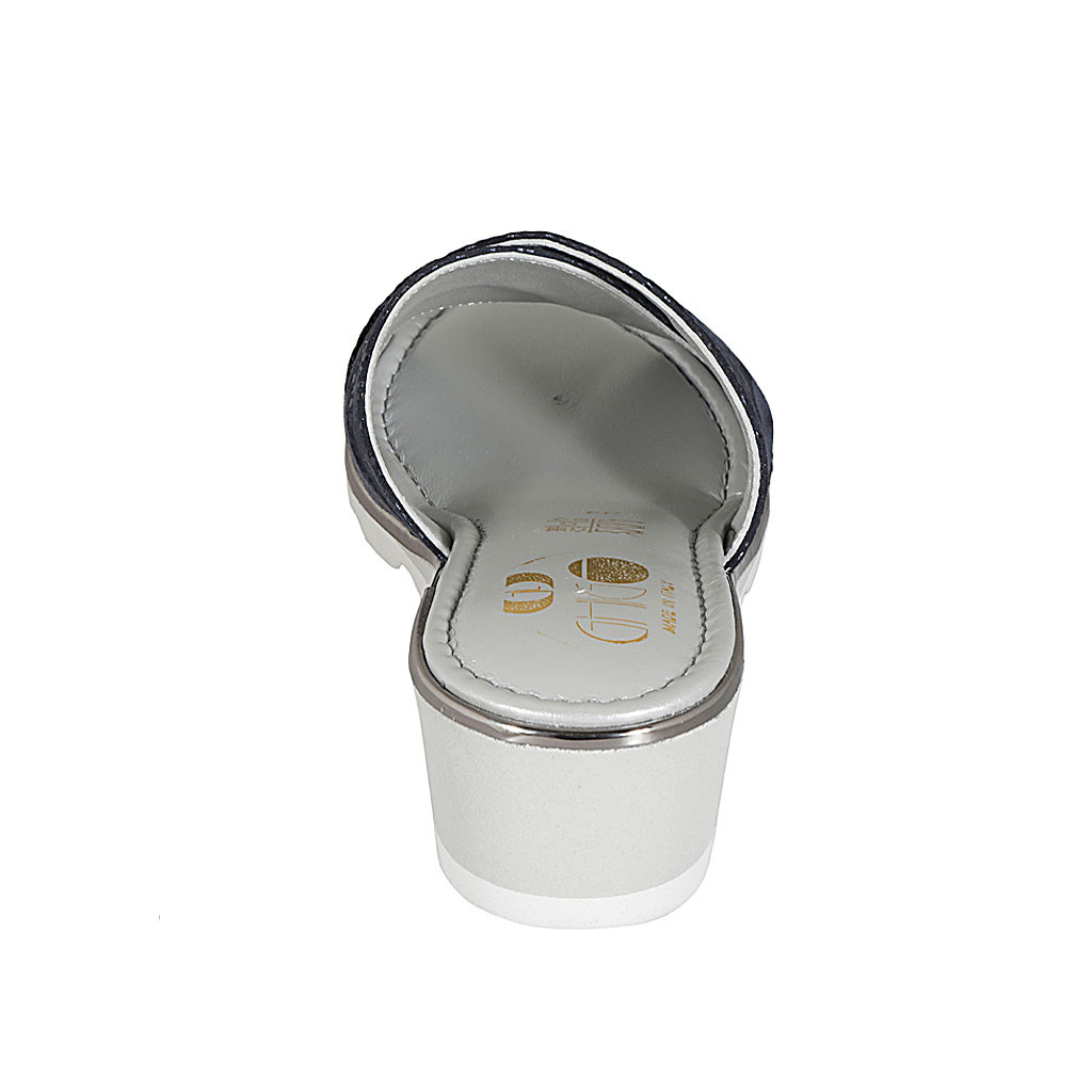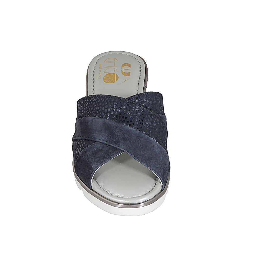 Sabo para mujer en piel azul y gamuza imprimida azul cuña 5 - Tallas disponibles:  42