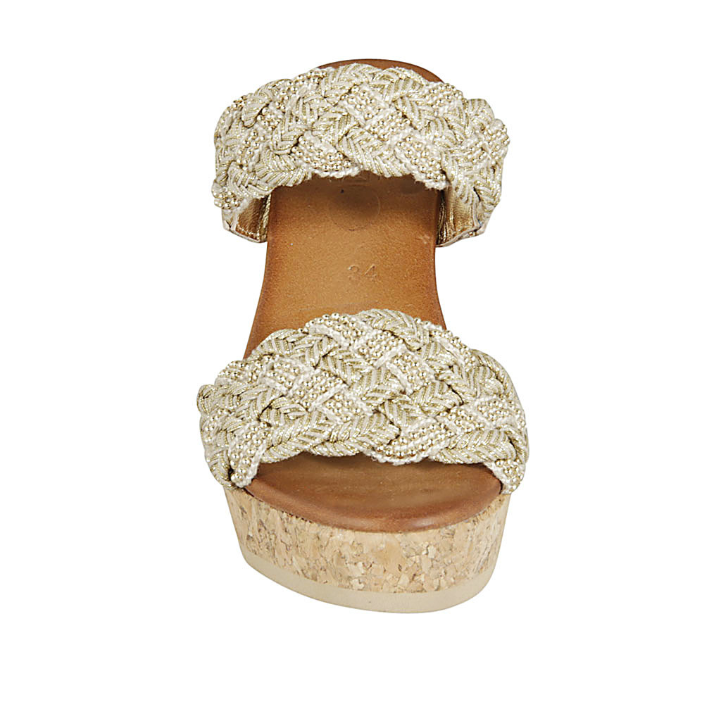 Mule para mujer en tejido trensado y piel platino con tachuelas, plataforma y cuña 9 - Tallas disponibles:  42, 43