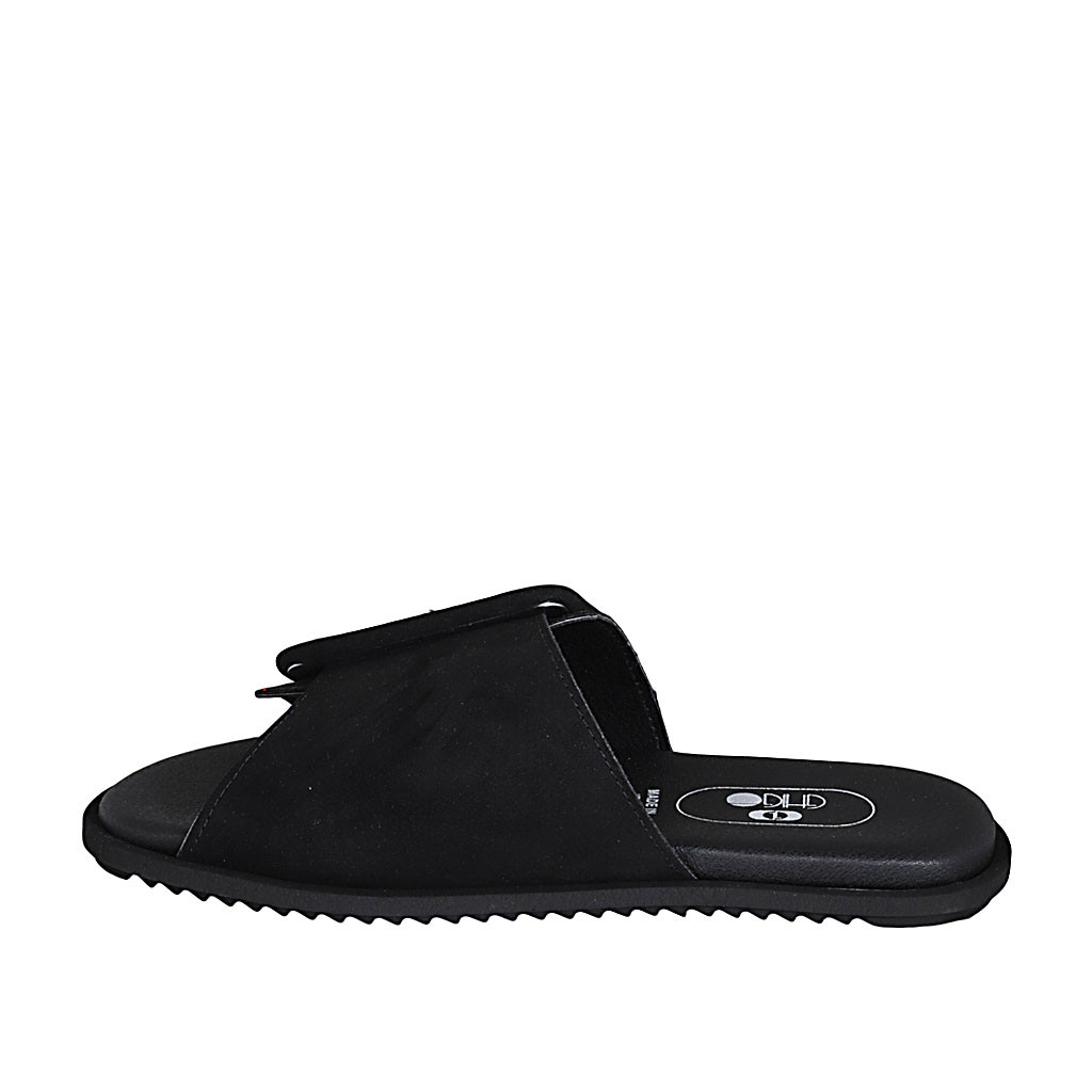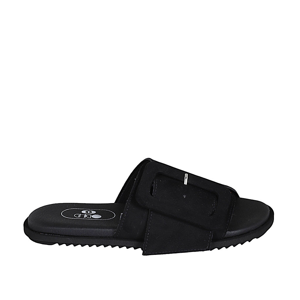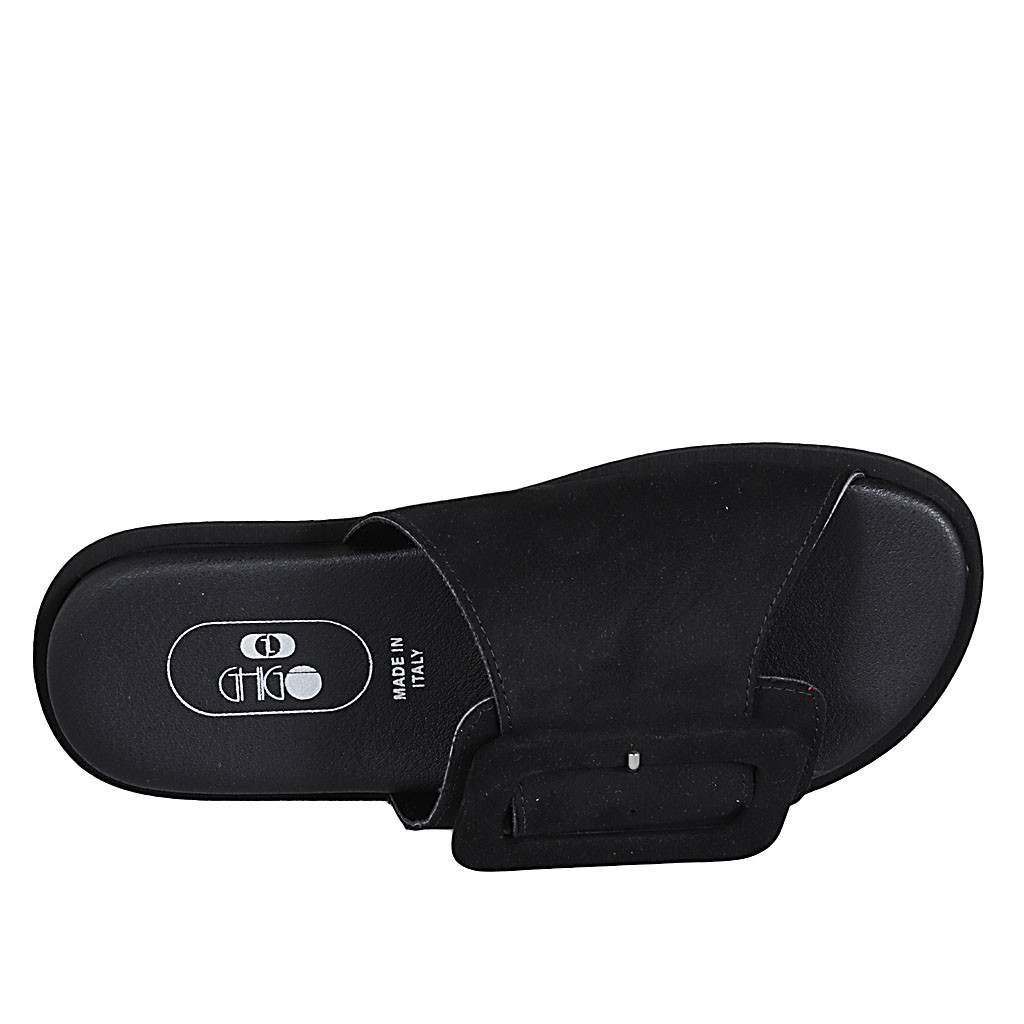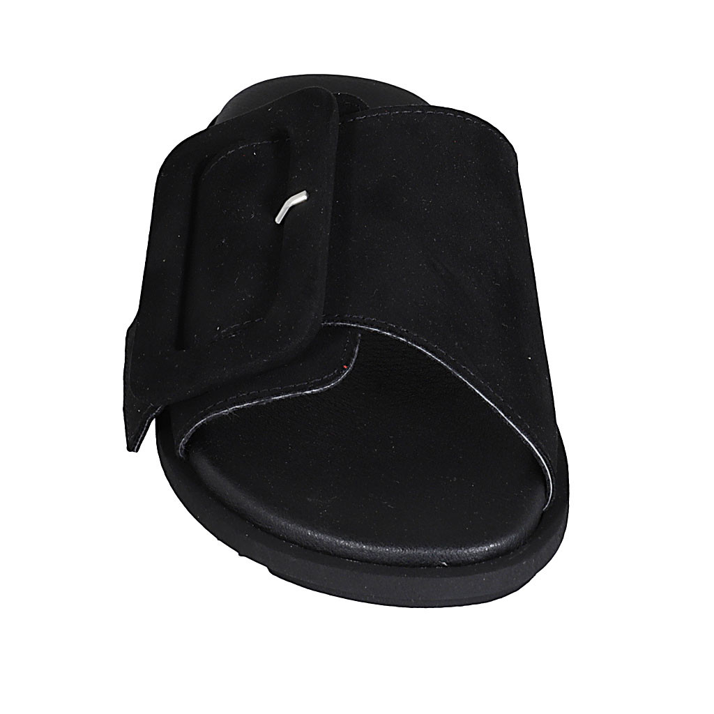 Sabo para mujer en gamuza negra con hebilla cuña 1