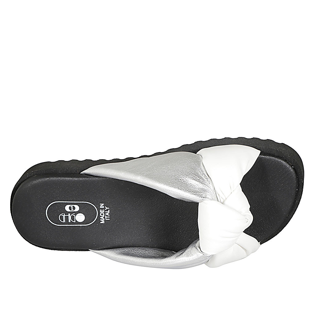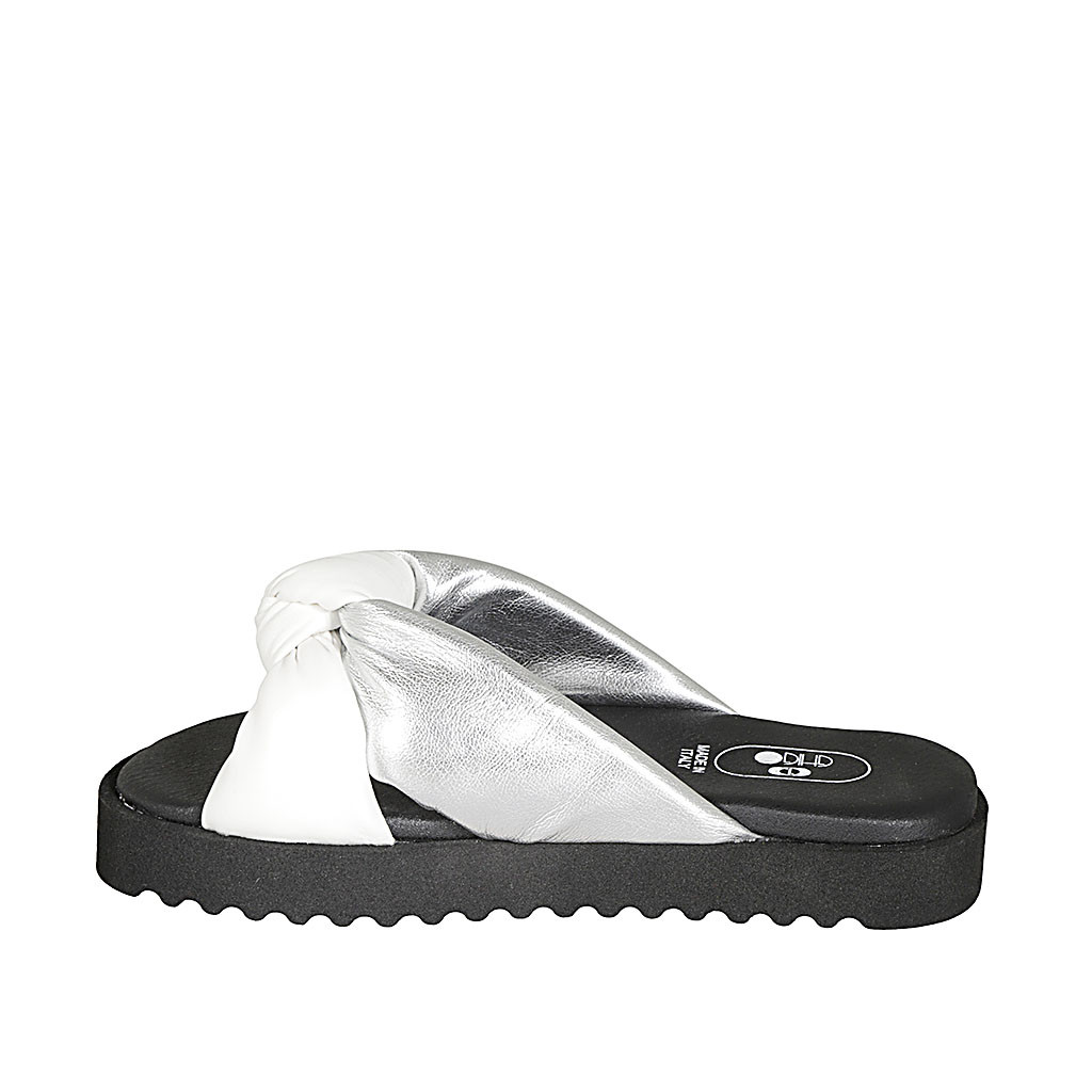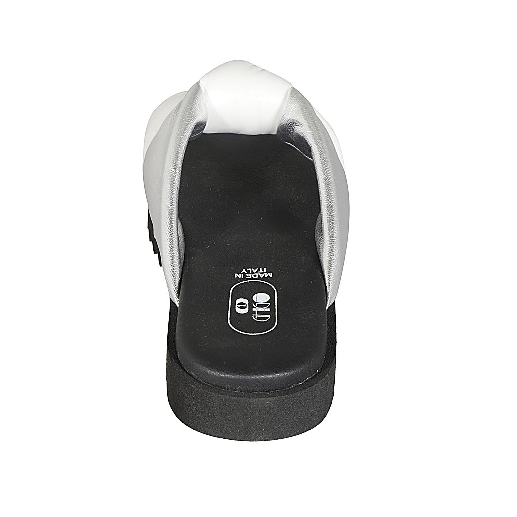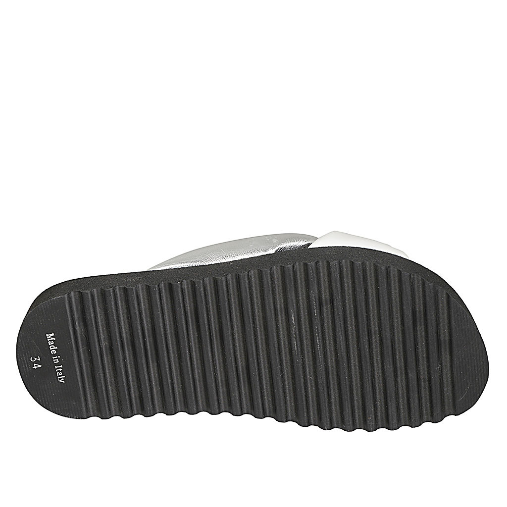 Zapato abierto para mujer en tejido laminado plateado con cinturon cruzado tacon 8
