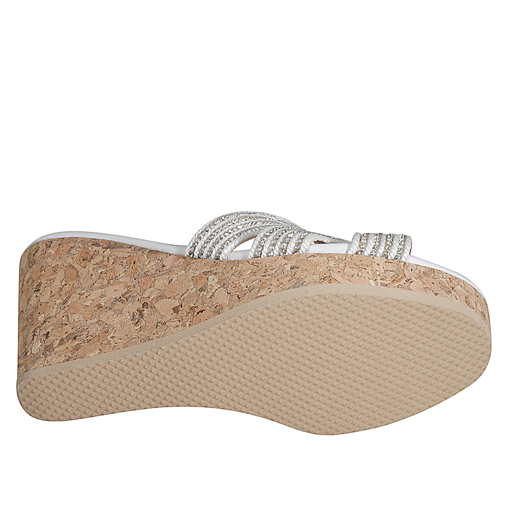 Mule para mujer en tejido soga blanco con estras, plataforma y cuña 9 - Tallas disponibles:  35