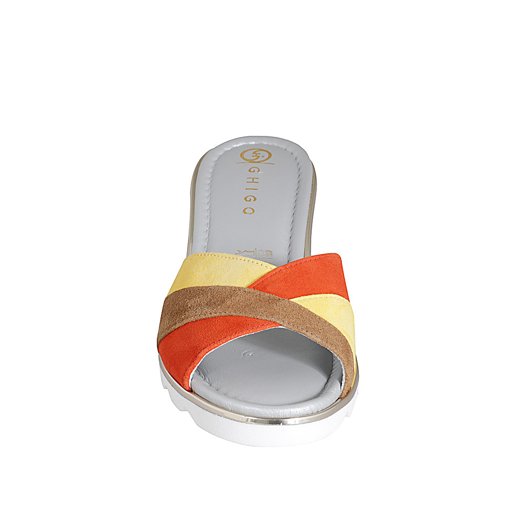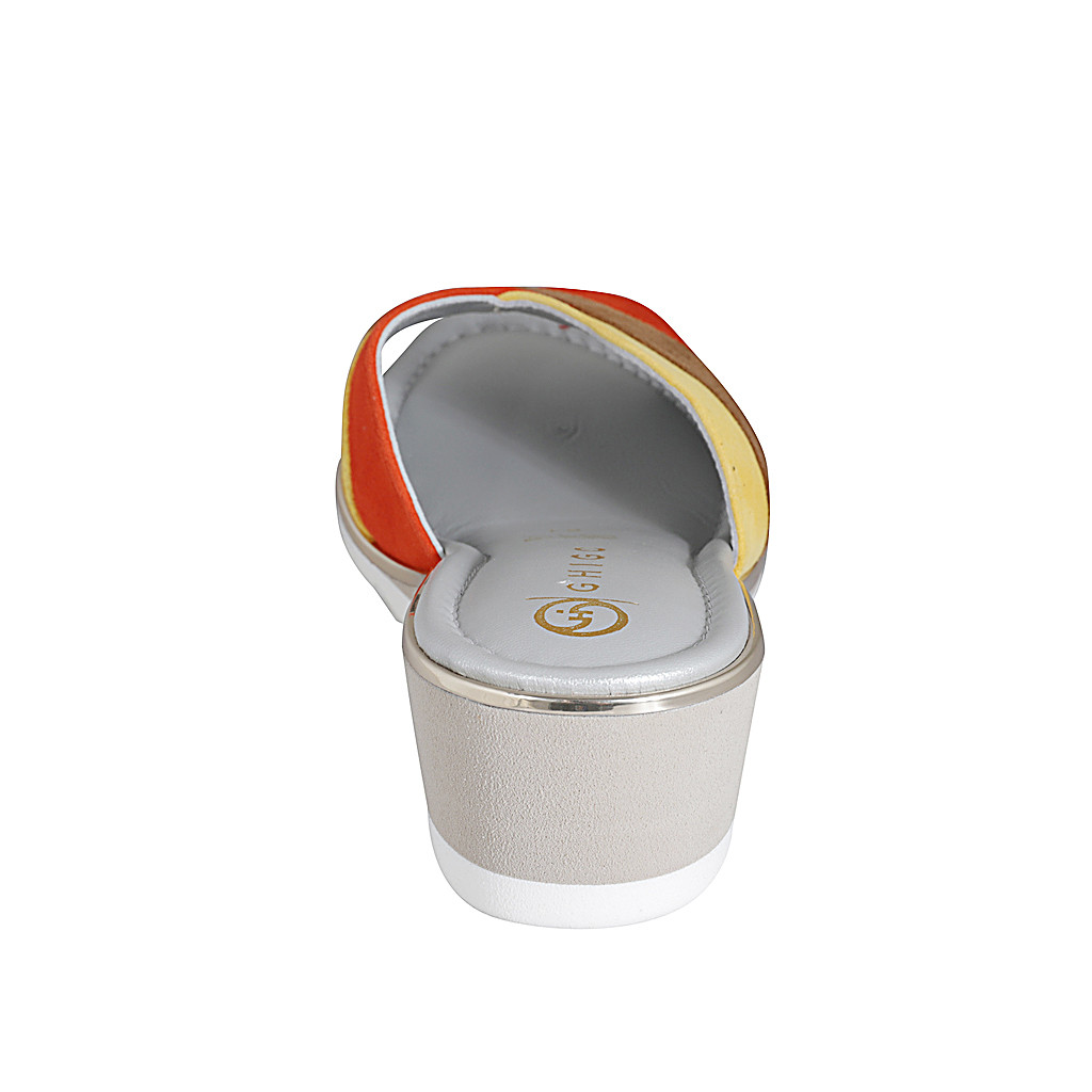 Mule para mujer en gamuza amarillo, cognac y naranja cuña 4 - Tallas disponibles:  35