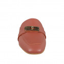 Sabo a punta cerrada para mujer en piel rojo ladrillo con accesorio dorado tacon 2
