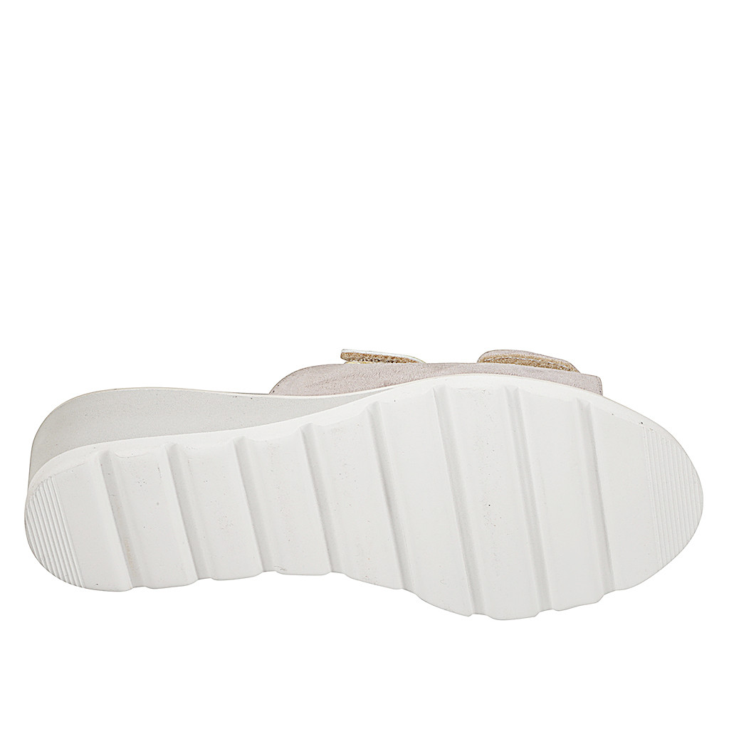 Sabo abierto para mujer con plantilla en memory foam y cierre de velcro, gamuza color gris y piel plaetada con cuña 5