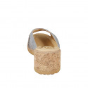 Sabot abierto para mujer con plantilla en memory foam, en gamuza azul claro y piel imprimida gris, con cuña de corcho 5