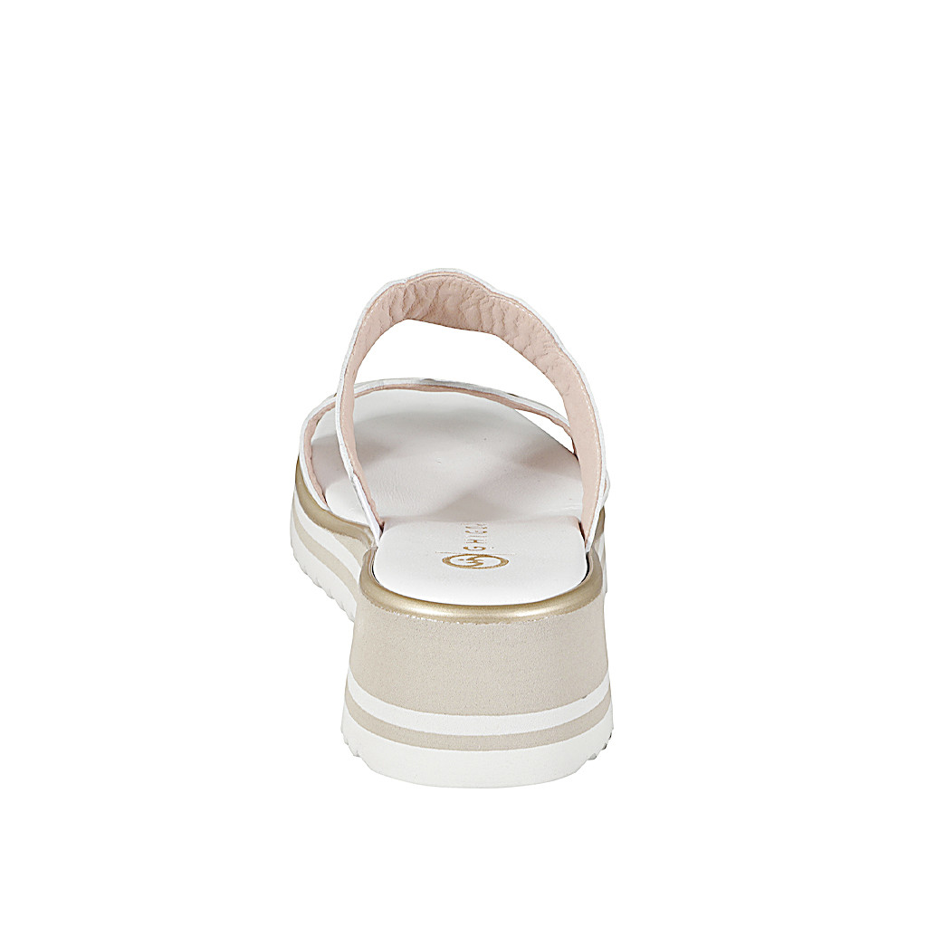 Sandalias para mujer de 2 tiras con elástico y tachuelas en piel de color cognac y con cuña 3