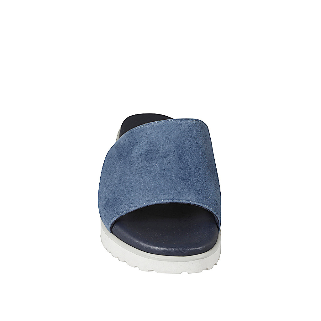 Sabo abierto para mujer con elástico en gamusa color azul y cuña alta 4 - Tallas disponibles:  32, 33, 34, 35, 42, 43, 44, 45