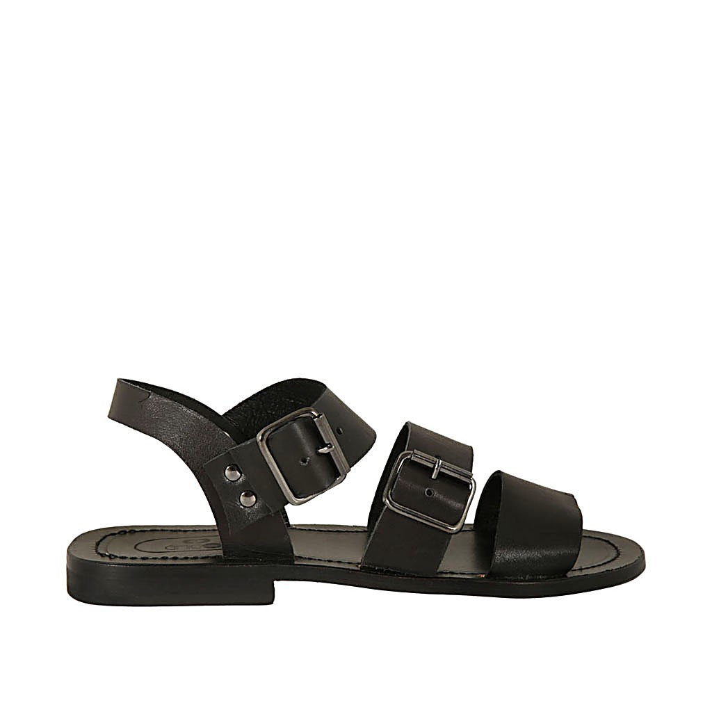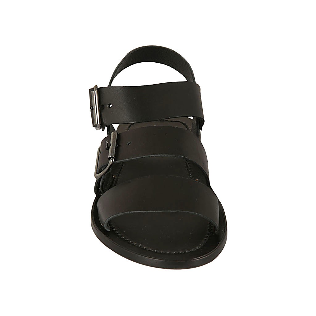 Sandalia con estrás en piel negra para mujer tacon 2