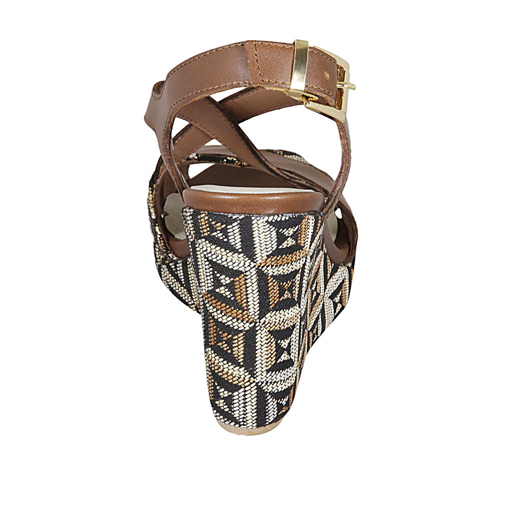 Sandalia para mujer con plataforma efecto óptical multicolor en piel cognac cuña 10 - Tallas disponibles:  42