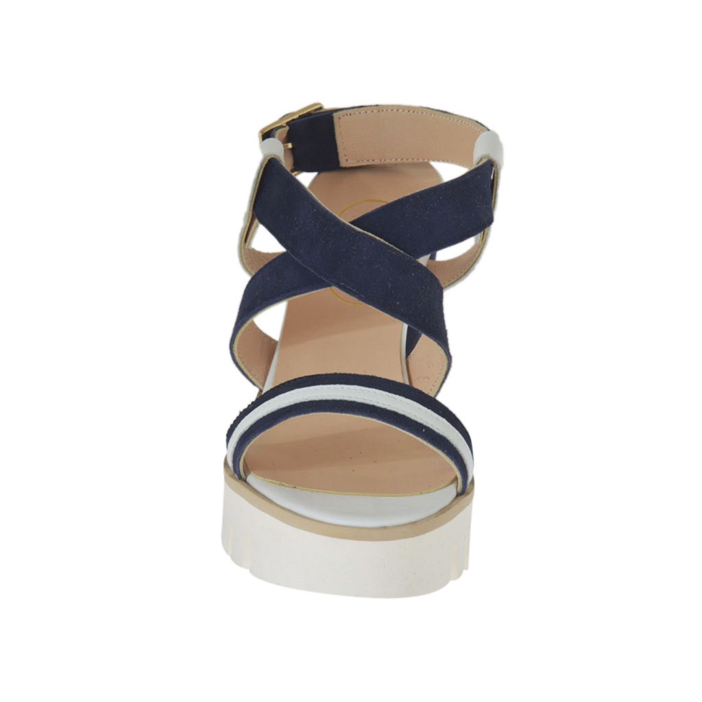 Sandalia para mujer en piel blanca y gamuza azul tacon 9 - Tallas disponibles:  42