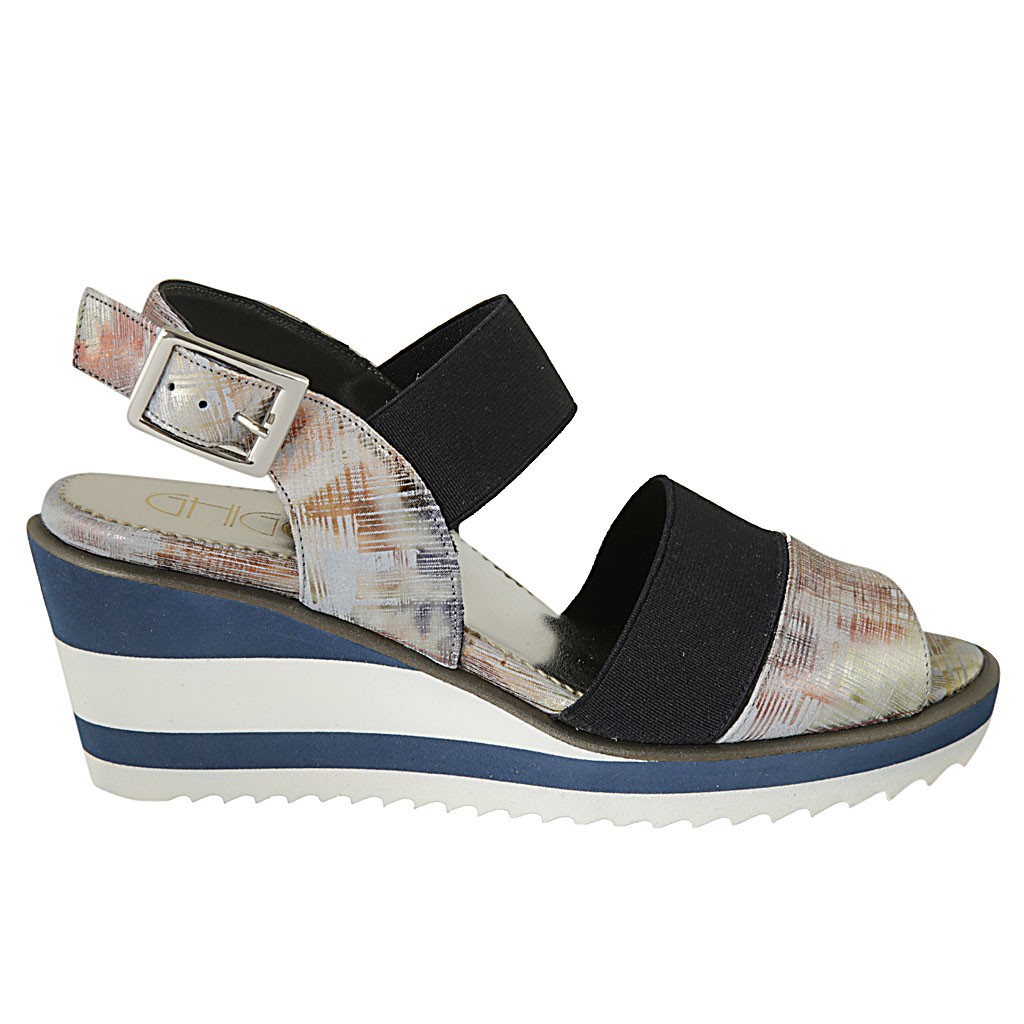 Sandalia para mujer con elasticos en gamuza estampada multicolor cuña 6