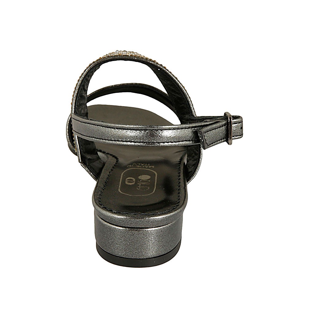 Sandalia en piel laminada gris con estrás multicolores para mujer tacon 2 - Tallas disponibles:  32