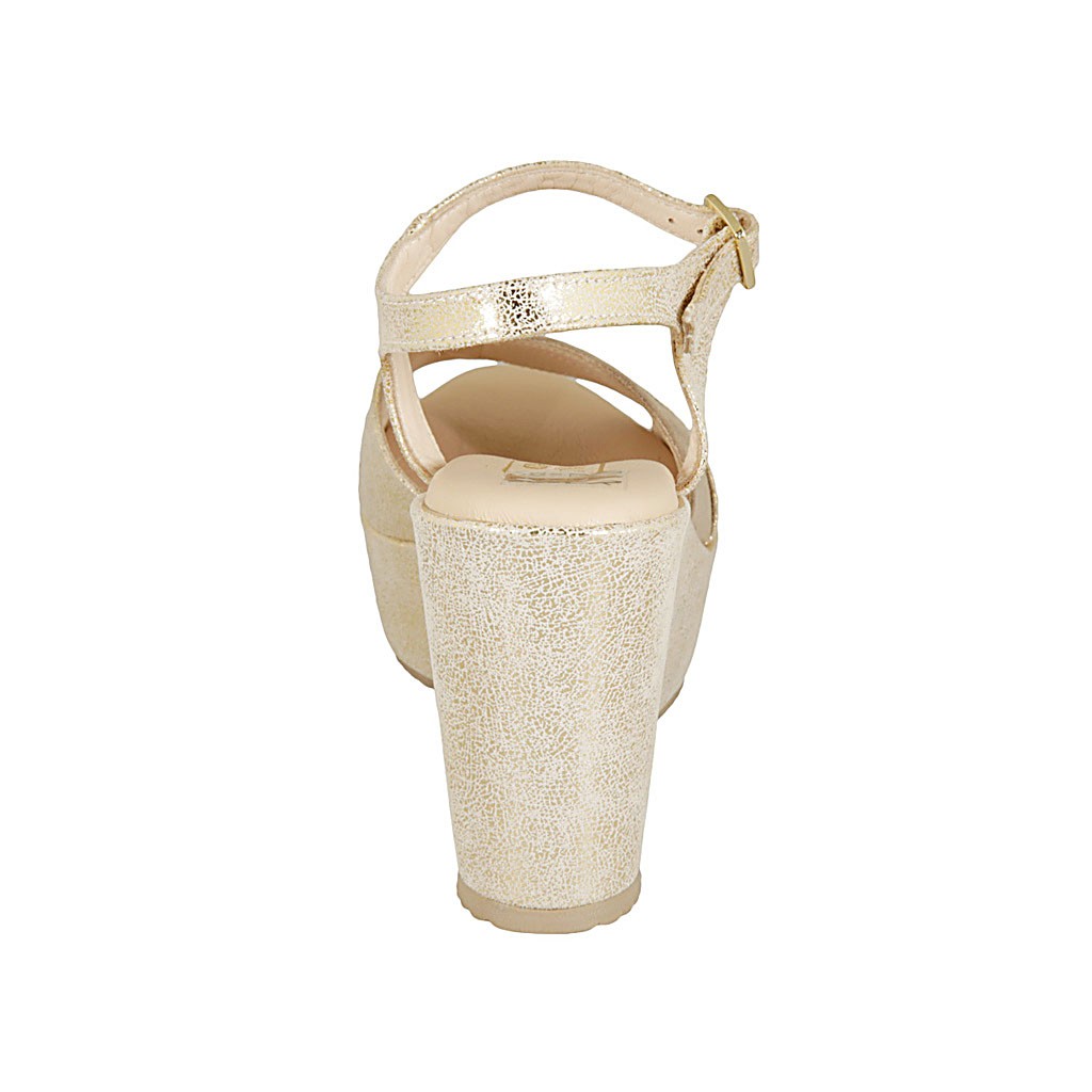 Sandalia para mujer en gamuza imprimida y laminado platino y gris pardo con cinturon, plataforma y cuña 9 - Tallas disponibles:  43