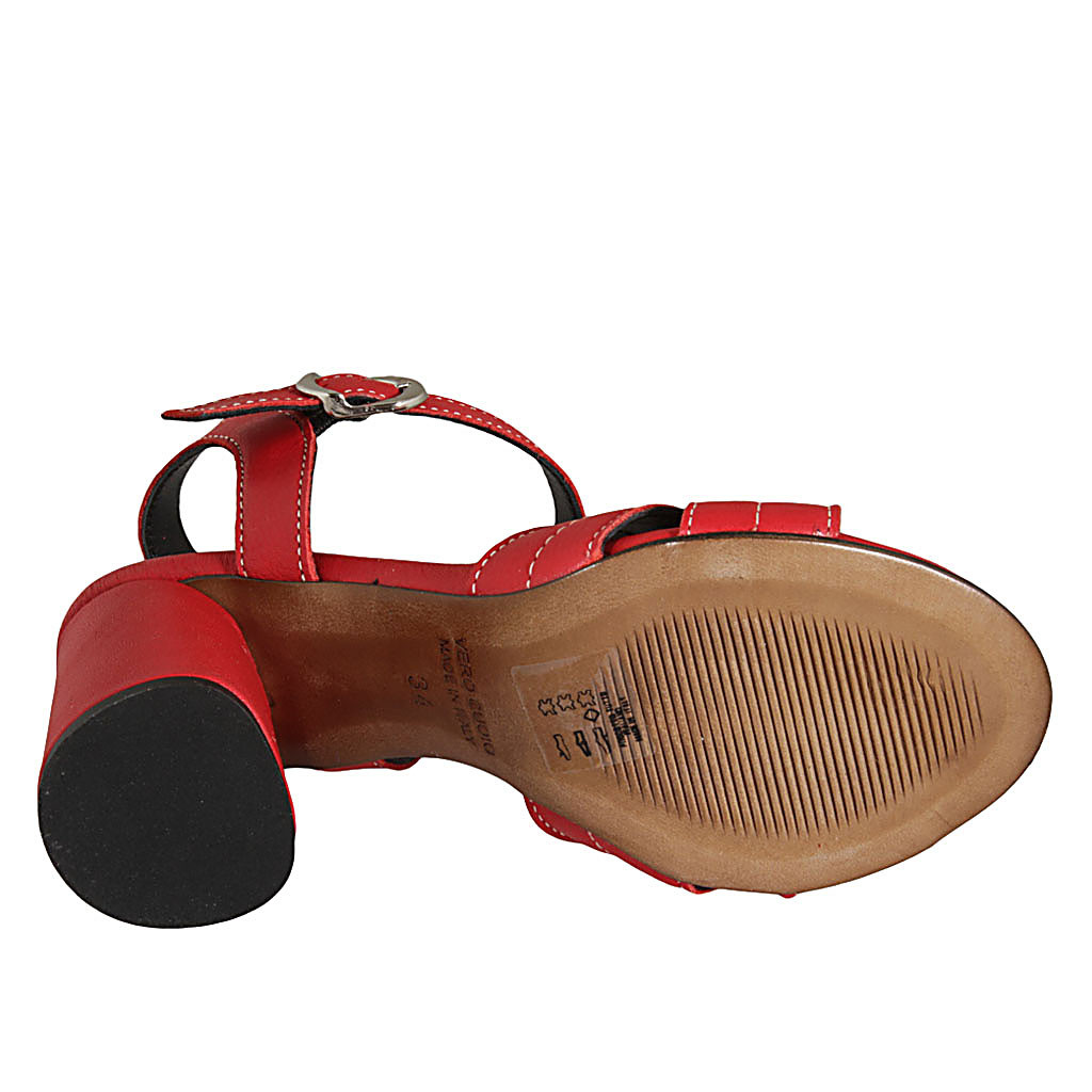 Sandalia con cinturon para mujer en piel roja tacon 7