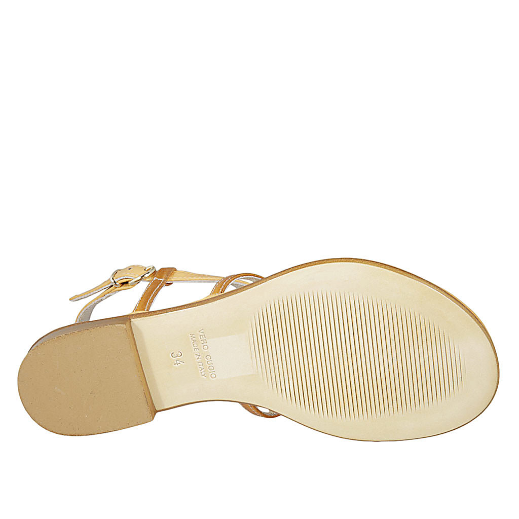 Sandalia infradedo para mujer con accesorio en piel y piel laminada naranja tacon 1 - Tallas disponibles:  42