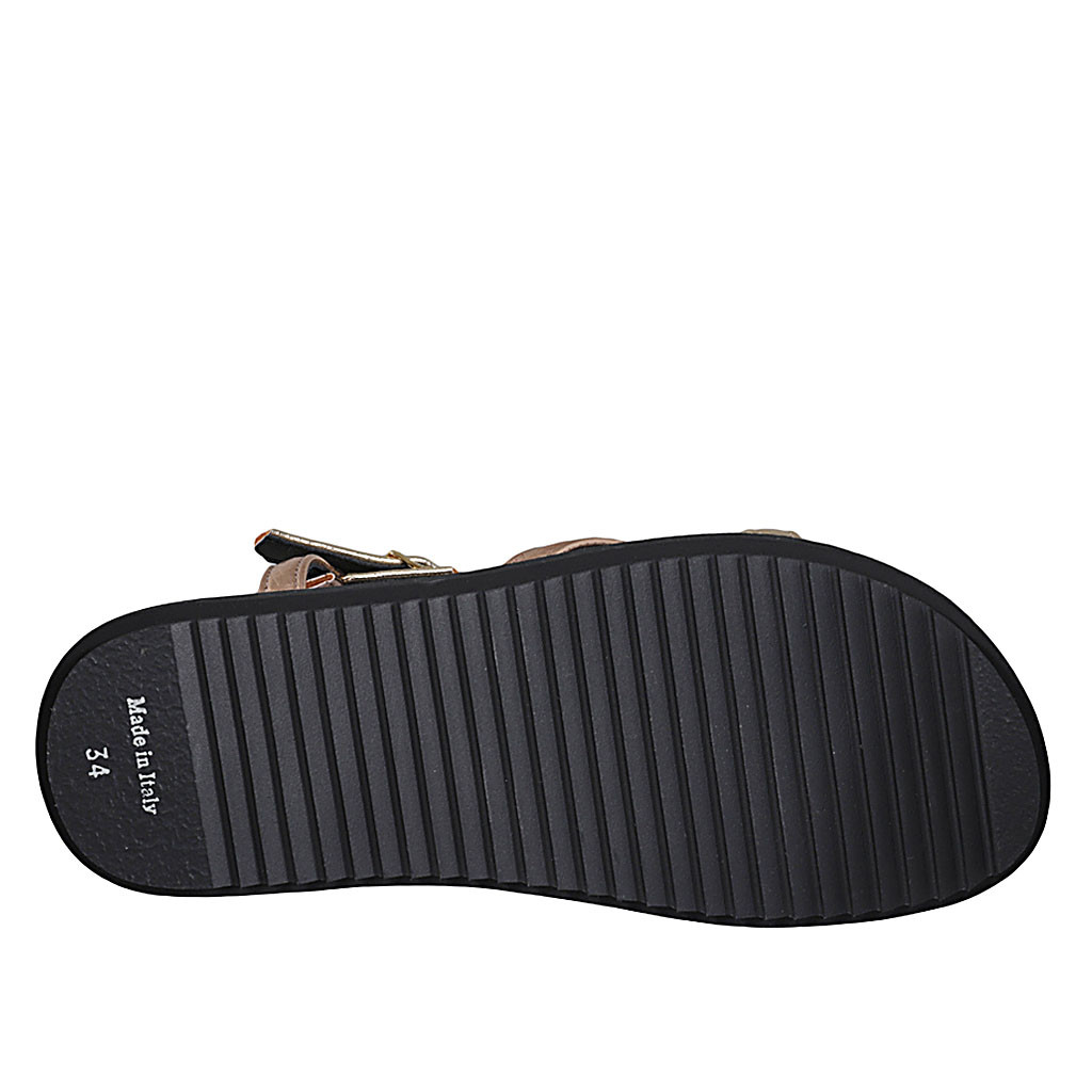 Sandalia de dedo para mujer en piel laminada cobrizo y platino con cinturon cuña 1 - Tallas disponibles:  42