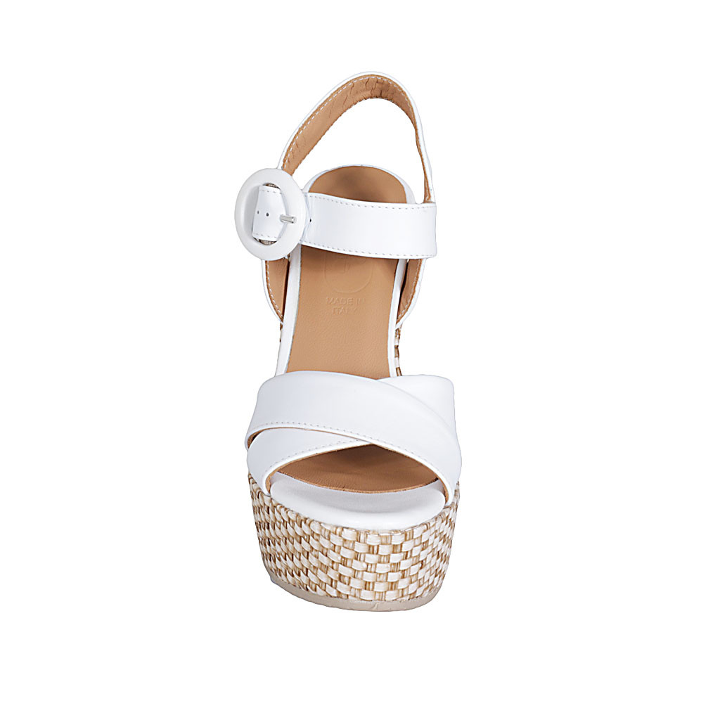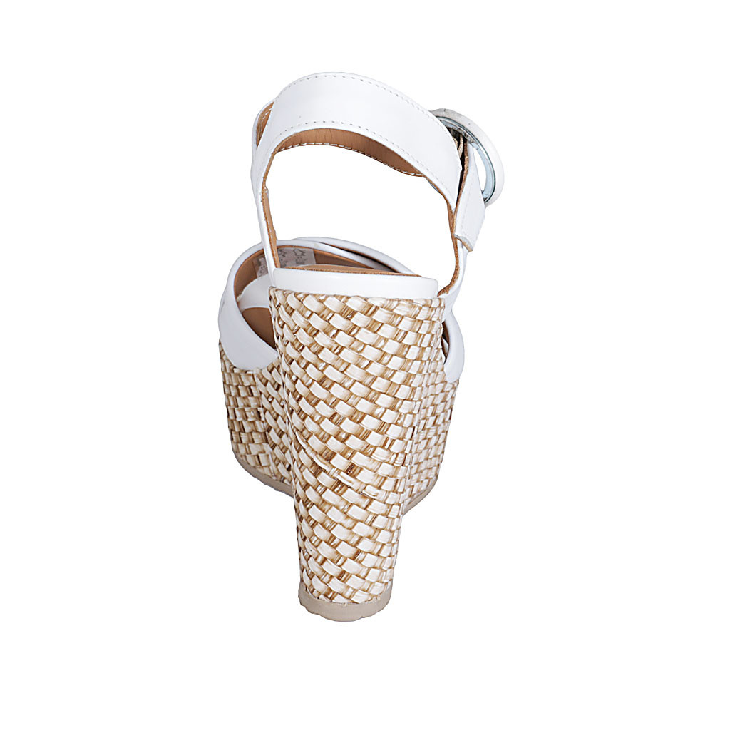 Sandalia para mujer en piel blanca con cinturon, plataforma y cuña trensada 12 - Tallas disponibles:  43