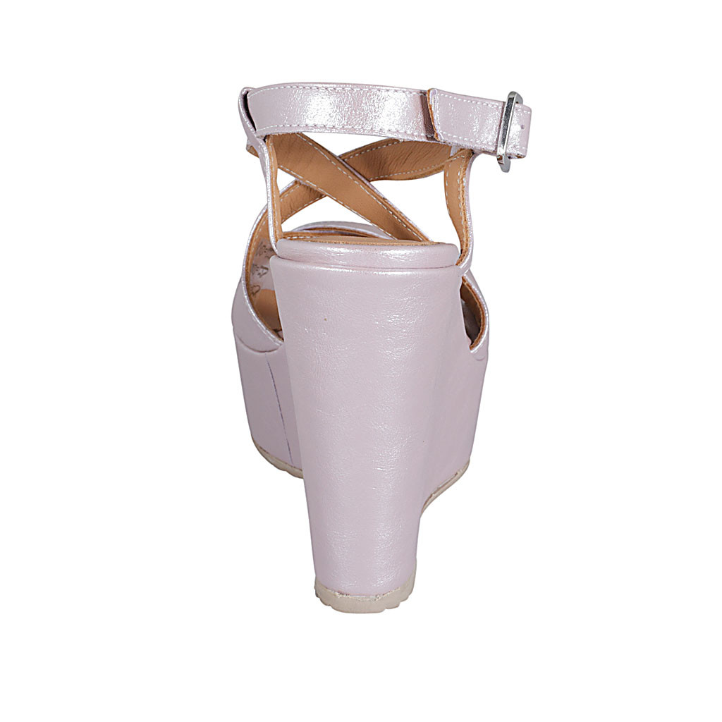Sandalia para mujer en piel imprimida laminada rosa con cinturon, plataforma y cuña 12 - Tallas disponibles:  31, 43