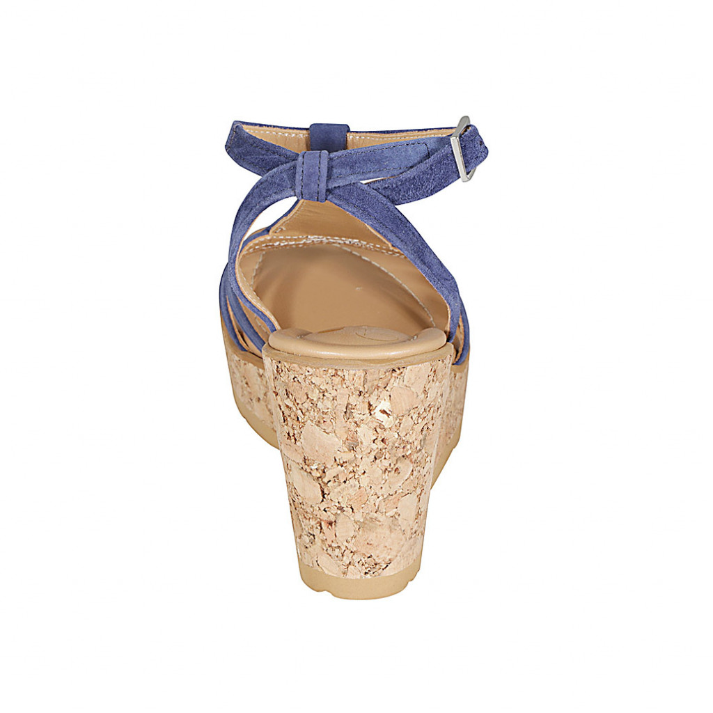Sandalia con cinturon para mujer en gamuza azul y tachuelas doradas con plataforma y cuña 9 - Tallas disponibles:  31