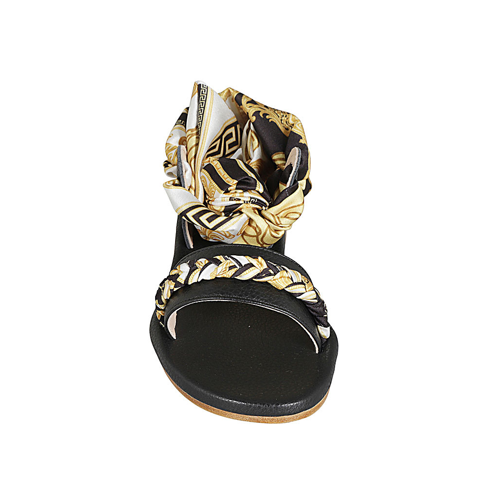 Sandalia para mujer con cinturon y accesorio bufanda en piel negra tacon 2